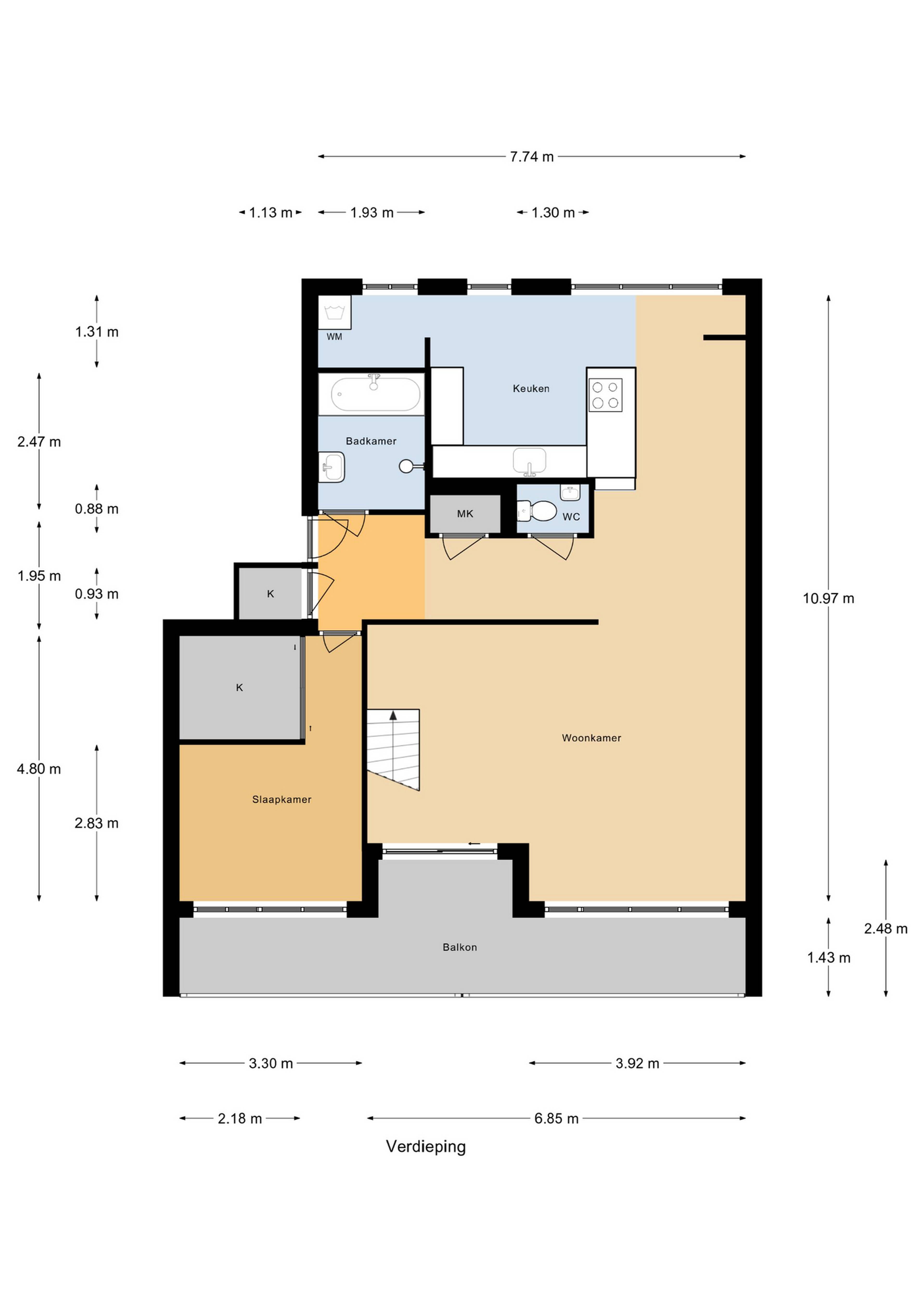De woning is zorgvuldig professioneel ingemeten. De Meetinstructie is gebaseerd op de NEN2580. De Meetinstructie is bedoeld om een meer eenduidige manier van meten toe te passen voor het geven van een indicatie van de gebruiksoppervlakte. De Meetinstructie sluit verschillen in meetuitkomsten niet volledig uit, door bijvoorbeeld interpretatieverschillen, afrondingen of beperkingen bij het uitvoeren van de meting.