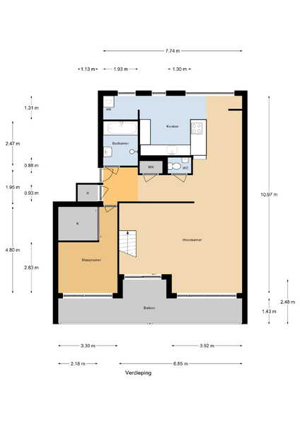 -Het balkon is circa 17 m² Verwarming door middel van blokverwarming.