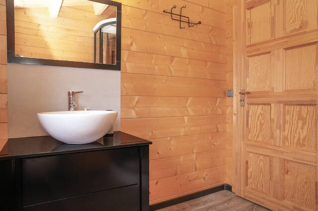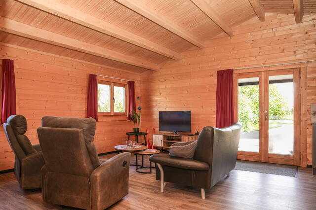 De living is licht en uitnodigend dankzij de raampartijen en de openslaande deuren naar het terras. Hier start de dag met een ontbijt in de zon en eindigt hij met een goed glas wijn in de avondzon. De houten afwerking en neutrale kleuren maken dat je direct het vakantiegevoel ervaart, of je nu zelf verblijft of gasten ontvangt.