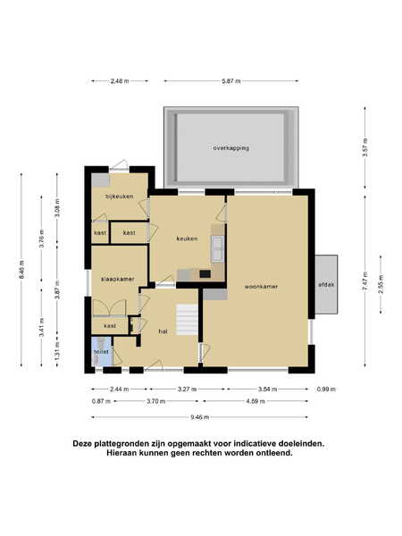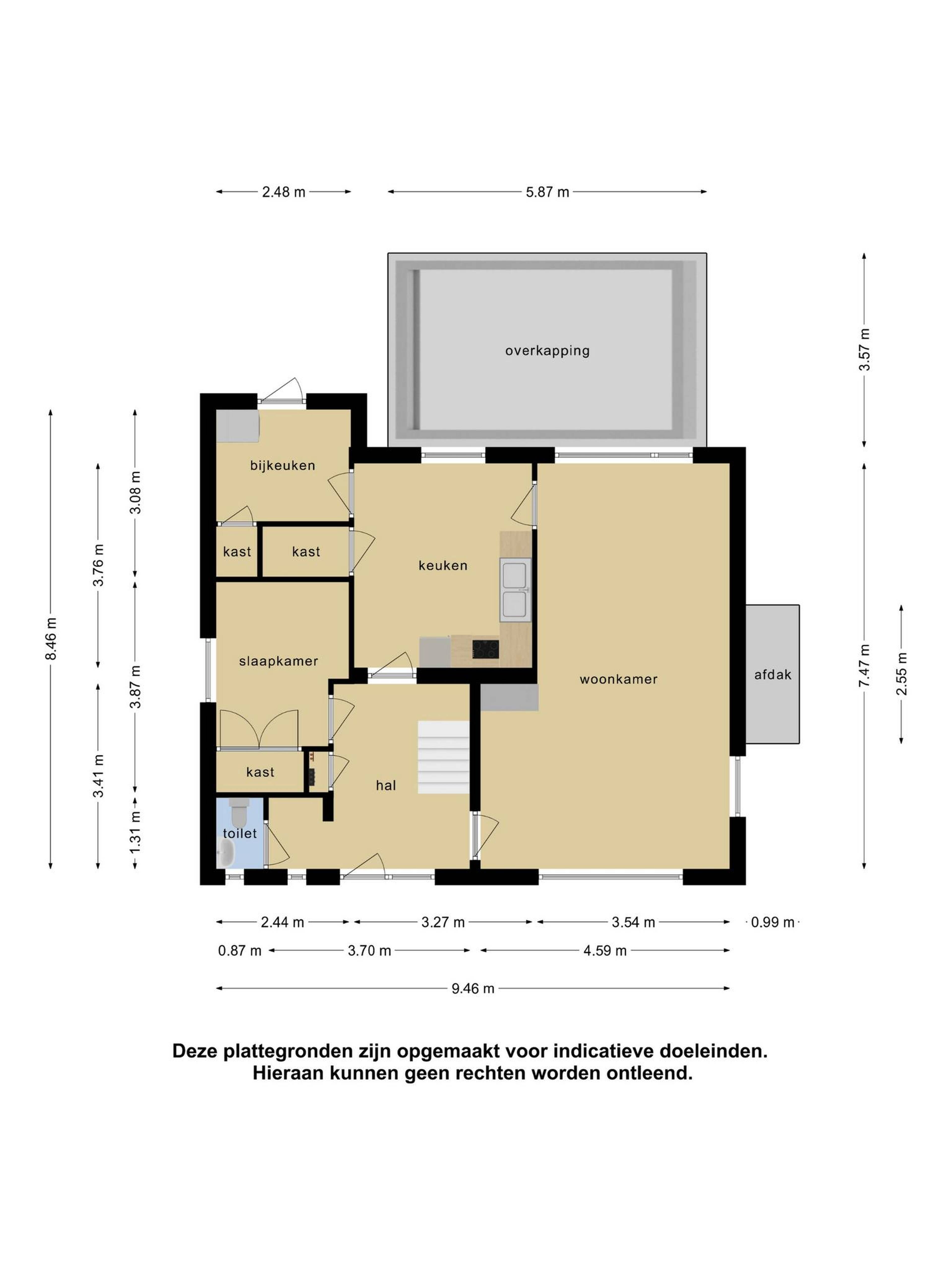 De keuken is erg ruim, wat veel bewegingsvrijheid geeft. Het L-vormige keukenblok voorziet je van ruim voldoende opbergruimte en werkoppervlakte. Bovendien is de keuken uitgerust met diverse inbouwapparatuur zoals een afzuigkap, oven en gaskookplaat. De inbouwkast in de keuken geeft je een handige opbergplek voor bijvoorbeeld voedsel waren. Naast de keuken krijg je toegang tot een bijkeuken. Deze ruimte is netjes afgewerkt en je vindt er een aansluiting voor een witgoed set. Ook krijg je vanuit hier toegang tot de achtertuin.