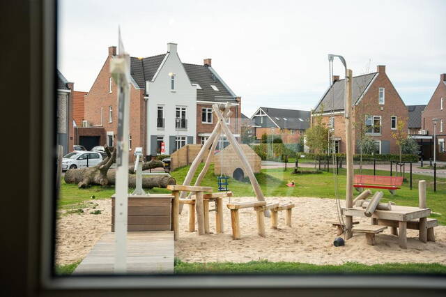 Aan de voorzijde van de woning heb je een groen aanzicht en voor de deur bevindt zich een groot speelveld. De straat is autoluw, waardoor het ideaal is voor spelende kinderen. Nabij de woning is voldoende openbare parkeergelegenheid. De achtertuin is netjes aangelegd en biedt volop ruimte om te genieten van het buitenleven, en een houten berging en een achterom zorgen voor gemak en comfort.