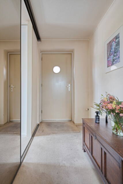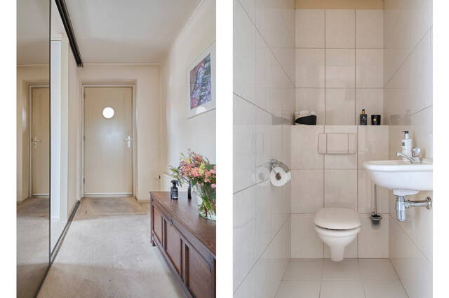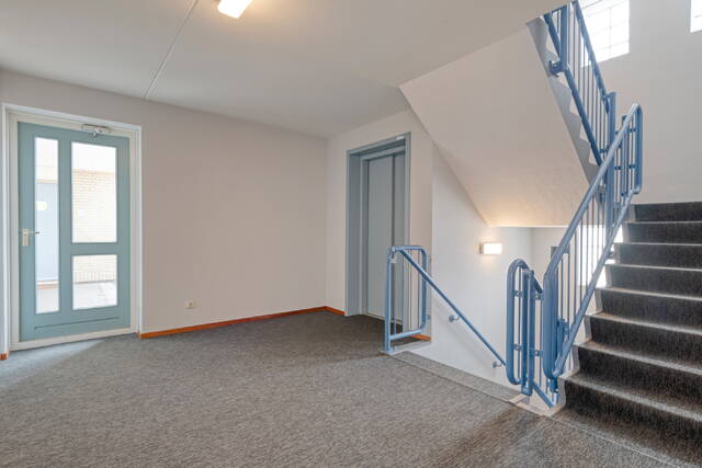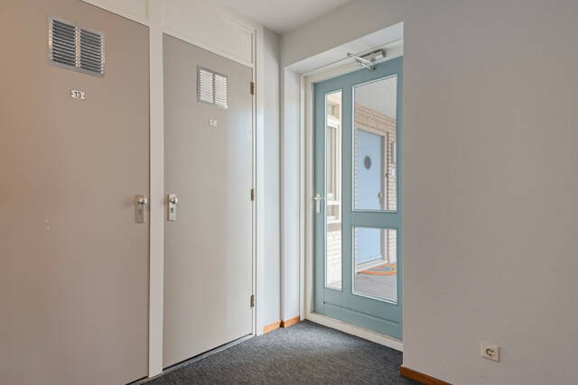 Via de gezamenlijke entree komt u in de centrale hal met brievenbussen. Het appartement zelf heeft een ruime hal die toegang geeft tot de slaapkamers, badkamer, toilet en de woonkamer.