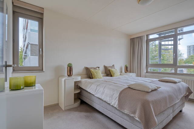 Het appartement beschikt over twee slaapkamers. Waarvan een master bedroom met veel lichtinval. De tweede slaapkamer kan dienen als logeerkamer of als werkkamer.