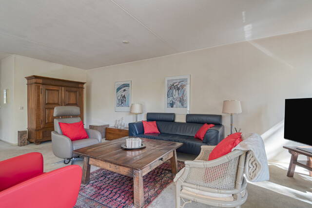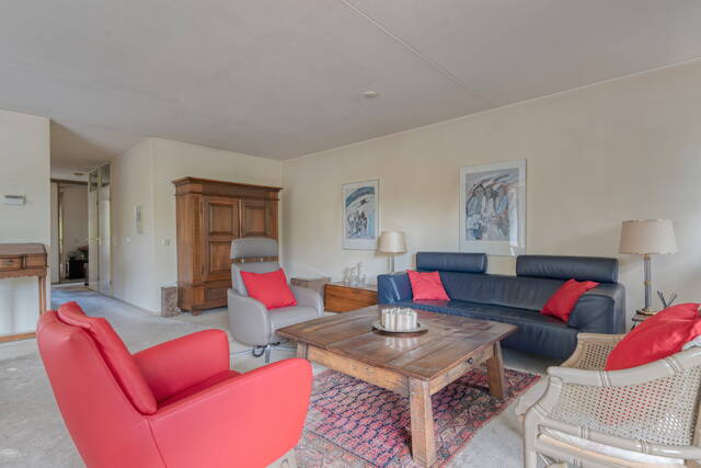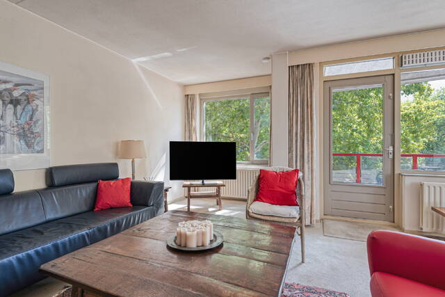 De royale woonkamer biedt veel lichtinval door de grote raampartijen voorzien van HR+ glas en geeft direct toegang tot het balkon. Hier heeft u alle ruimte voor zowel een zit- als eetgedeelte.