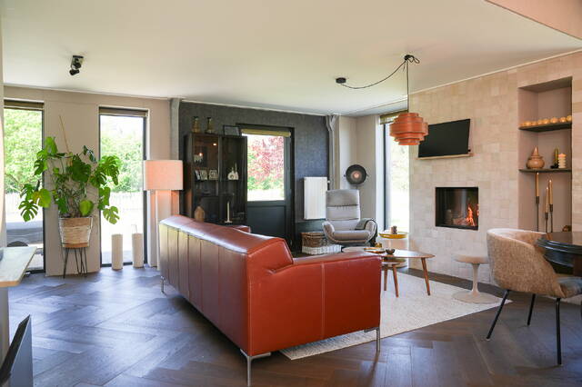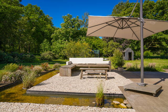 Zodra je het perceel van ruim 7.340 m² betreedt, voel je direct de rust en privacy. De grote ramen en openslaande deuren zorgen voor een naadloze overgang tussen binnen en buiten, waardoor het licht en de natuur overal aanwezig zijn. Op zonnige dagen geniet je op één van de vele terrassen of in de schaduwrijke veranda’s, terwijl je uitkijkt over het natuurzwembad en het omliggende groen. In de winter is het heerlijk toeven bij de knisperende open haard, met een goed boek en uitzicht op het landschap.