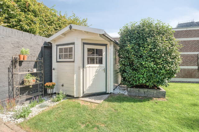 Buiten vind je een goed onderhouden tuin met zowel een achtertuin als een zijtuin. De achtertuin is voorzien van een overkapping, solardouche en een tuinhuis v.v. afzuigkap. De zijtuin is voorzien van een looppad naar de poort en een containeropstelplaats.