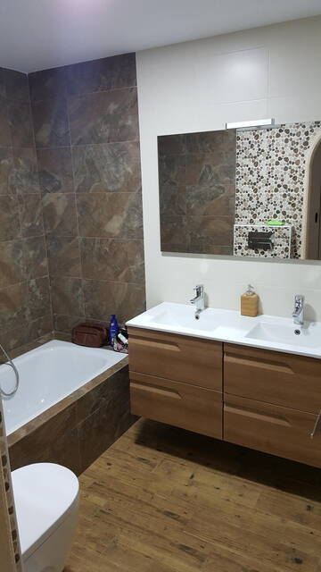 Op de benedenverdieping bevinden zich vier royale slaapkamers, waarvan drie met luxe en-suite badkamers. Een van de slaapkamers biedt directe toegang tot het terras en het zwembad – perfect voor gasten of familieleden die van wat extra privacy houden. Daarnaast is er een extra gastentoilet beschikbaar.