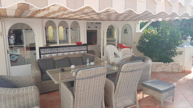 Het terras biedt tevens toegang tot een praktische bijkeuken en berging, ideaal voor opslag van tuin- en poolaccessoires.