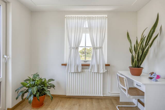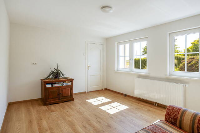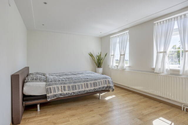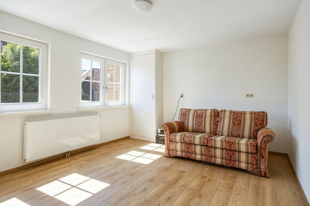 Uniek aan deze woning is de royale slaapkamer op de begane grond, ideaal voor wie gelijkvloers wil wonen of een rustige werkplek zoekt met uitzicht op de voortuin.
