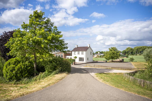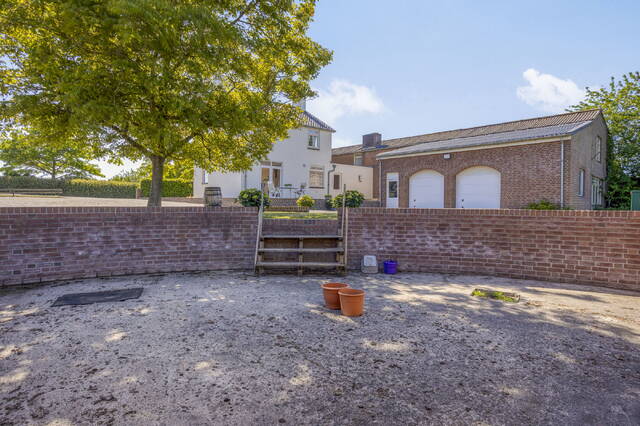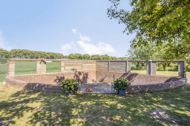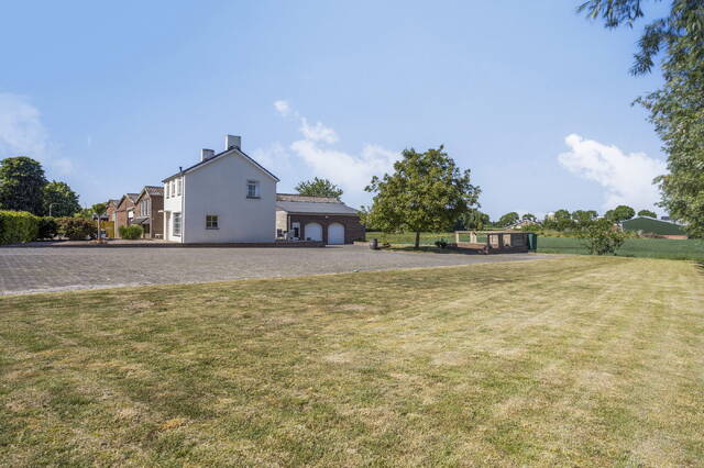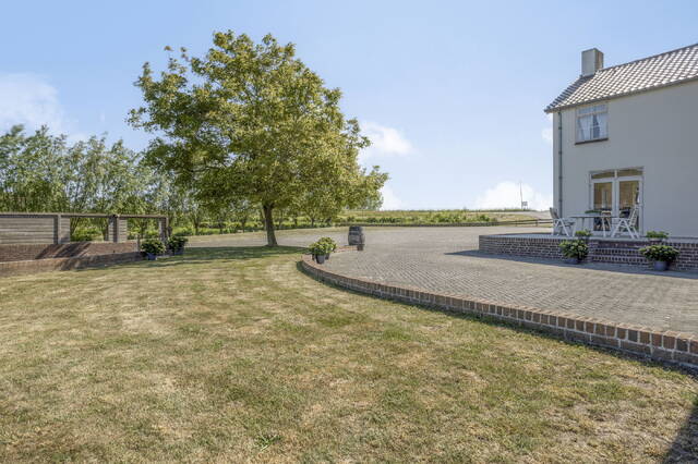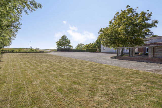 De buitenruimte is ronduit indrukwekkend. Rondom de woning ligt een keurig aangelegde tuin met een groot zonneterras, sierbestrating, groenblijvende borders en een schitterend uitzicht over de omliggende landerijen. Aan de achterzijde vind je een heerlijke zitkuil, perfect voor een buitenkeuken, moes- of siertuin. De oprit is ruim genoeg voor meerdere auto's en leidt naar de dubbele garage. De garage heeft een zolder over de gehele lengte, die bereikbaar is middels een vaste trap.