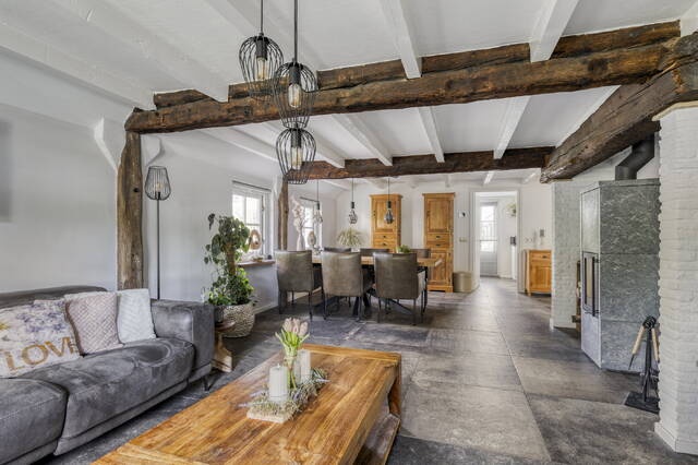 • Volledig gerenoveerde woonboerderij uit 1993 als herbouwde 200 jaar oude boerderij met hergebuik van vele materialen – karakter en modern comfort komen hier perfect samen