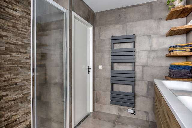 • Moderne badkamer (2022) – met ruime regendouche, bubbelbad en verwarmde spiegel