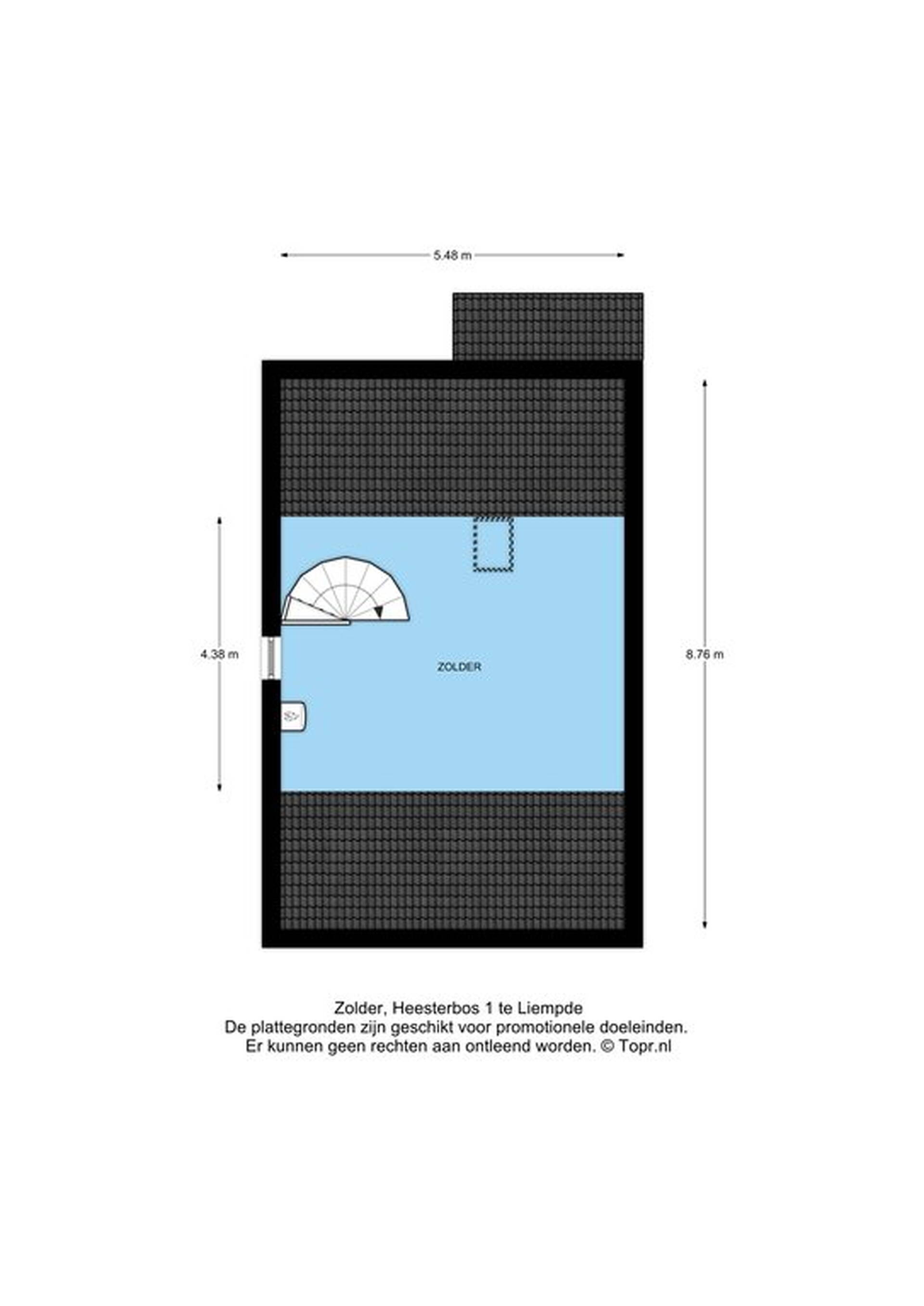 De zolderetage is volledig open en biedt plaats aan de cv-installatie. Door het grote vloeroppervlak en verschillende raampartijen kunnen op deze etage gemakkelijk meerdere slaapkamers worden gerealiseerd, zeker wanneer u overweegt een dakkapel te plaatsen. Houten plafondbalken tonen de constructie van de woning en geven veel sfeer.