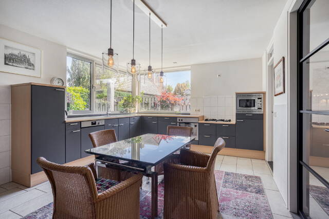 Royale leefkeuken aan de tuinzijde met modern werkblad, inbouwapparatuur en veel kastruimte