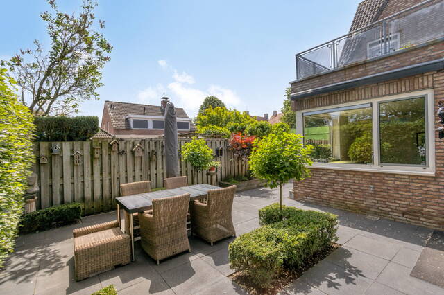 Dakterras aan de achterzijde, bereikbaar via dubbele deur vanuit de overloop – een heerlijke plek in de zon met veel privacy