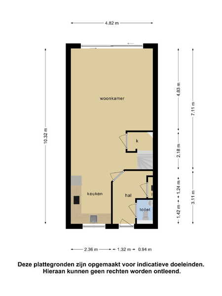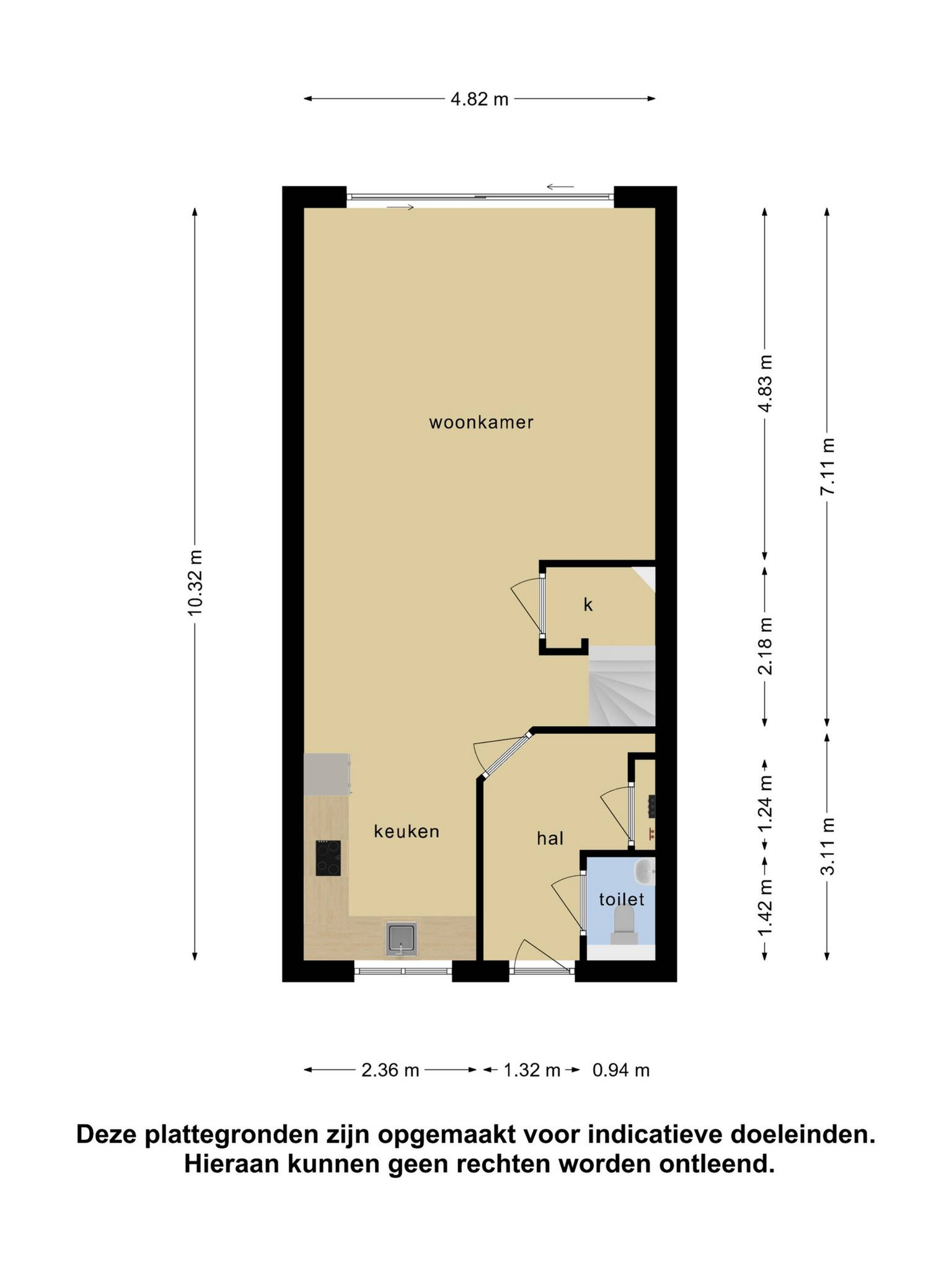 praktische trappenkast gelegen, met ruimte voor opslag en de opstelling van de vloerverwarming.