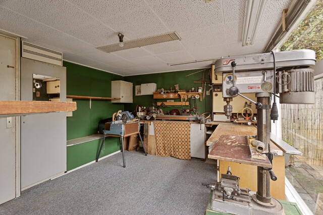 De ruime garage aan het huis is ideaal voor wie graag klust of extra opslagruimte nodig heeft. Of u nu een hobbyist bent die een werkplek zoekt of een fietsenstalling nodig hebt voor het hele gezin, de garage biedt een scala aan mogelijkheden, uiteraard ook voor uw auto. Daarnaast is er een aparte werkruimte of atelier, wat zeker aantrekkelijk is voor mensen die vanuit huis werken of een creatieve ruimte wensen.
