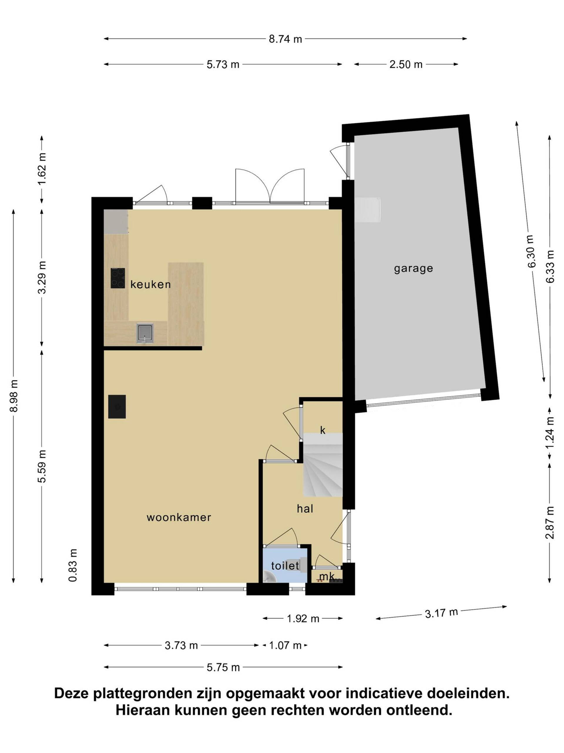 Vanuit de hal komt u in de woonkamer. De woonkamer en keuken zijn voorzien van een exclusieve kersen houten vloer en staan in directe verbinding met elkaar. De moderne U-keuken is voorzien van diverse inbouwapparatuur waaronder een vaatwasser, koelkast, magnetron/heteluchtoven, spoelbak, warmwater Boiler, gasfornuis. Door de grote raampartijen aan de achterzijde van de woning heeft overdag veel daglicht in de woning.