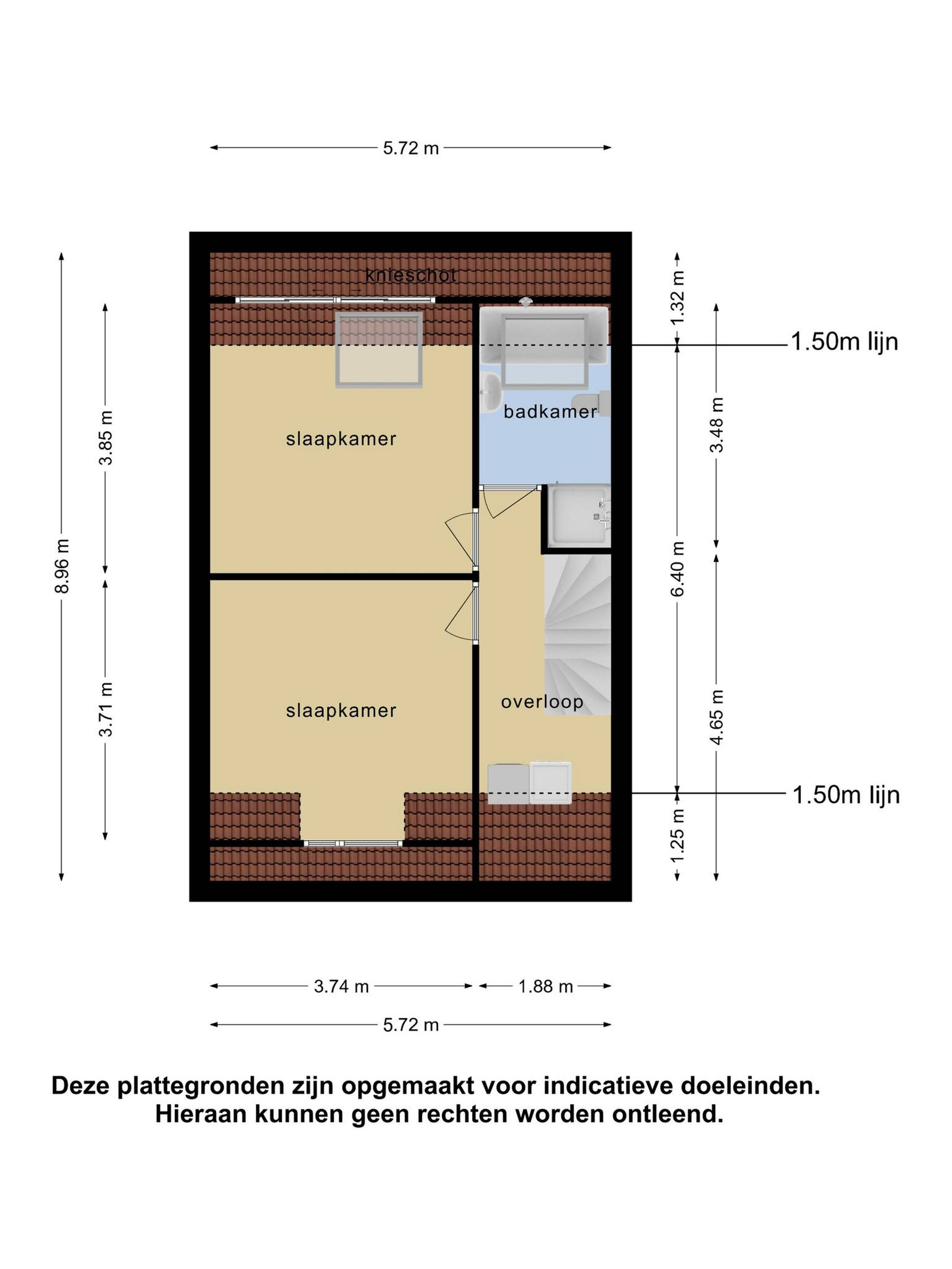Aan de overloop grenzen twee slaapkamers, de badkamer en een wasruimte met ruimte voor een wasmachine en droger. Over de hele eerste verdieping ligt een mooie laminaat vloer en de muren zijn voorzien van strak stucwerk. De grootste slaapkamer met groot dakraam, ligt aan de achterzijde van de woning en geeft uitzicht over de achtertuin. De tweede slaapkamer met dakkapel, ligt aan de voorzijde en biedt uitzicht over de straat. De moderne badkamer is voorzien van een toilet, inloop douche, bad en een wastafel met meubel. De badkamer heeft tevens een groot dakraam wat u zowel daglicht als natuurlijke ventilatie biedt. De badkamer is voorzien van zowel betegelde wanden als vloer.