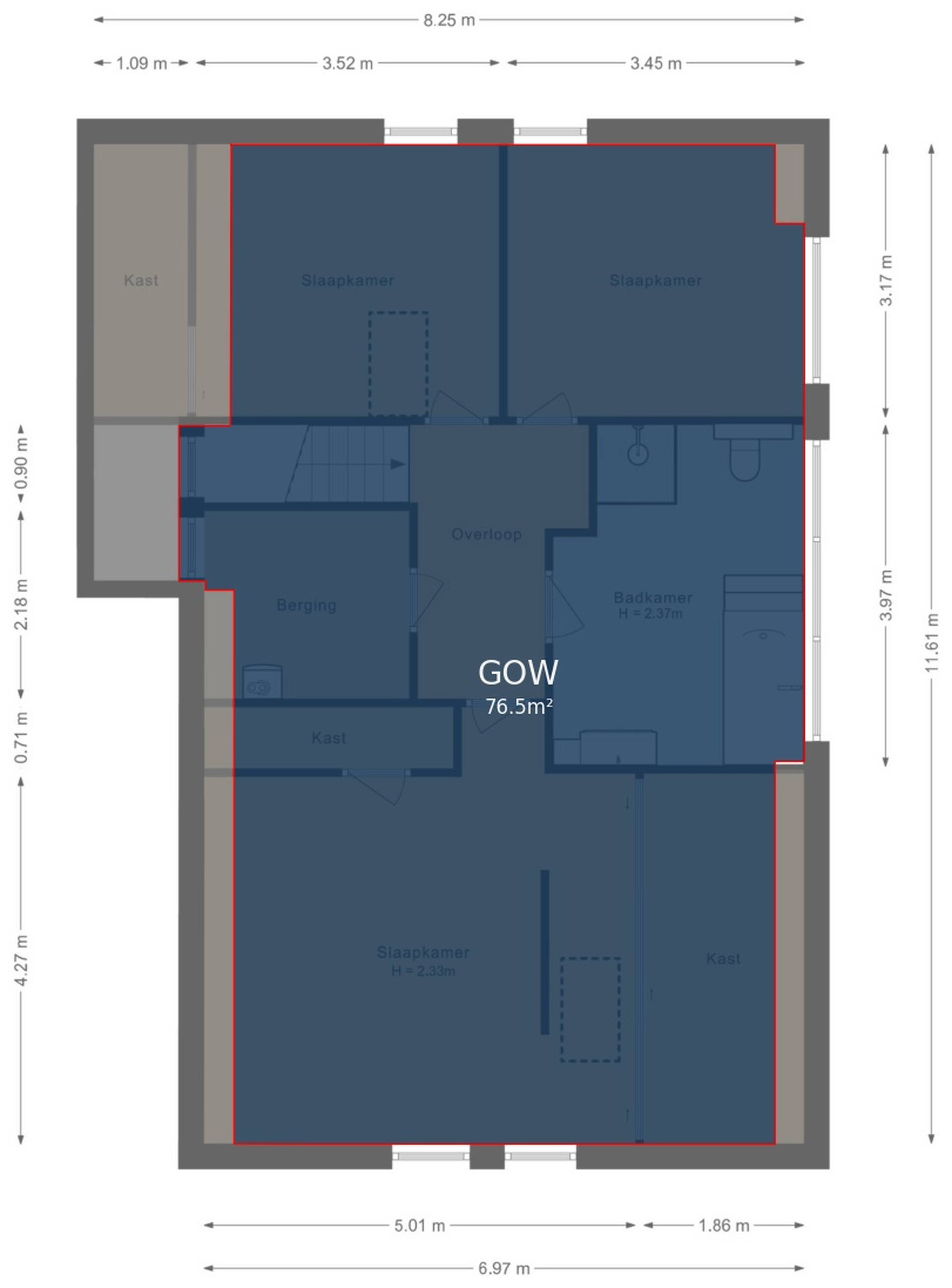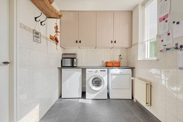 De woning beschikt verder over een bijkeuken en een inpandige berging van in totaal 19 m², perfect voor extra opslag of als hobbyruimte.