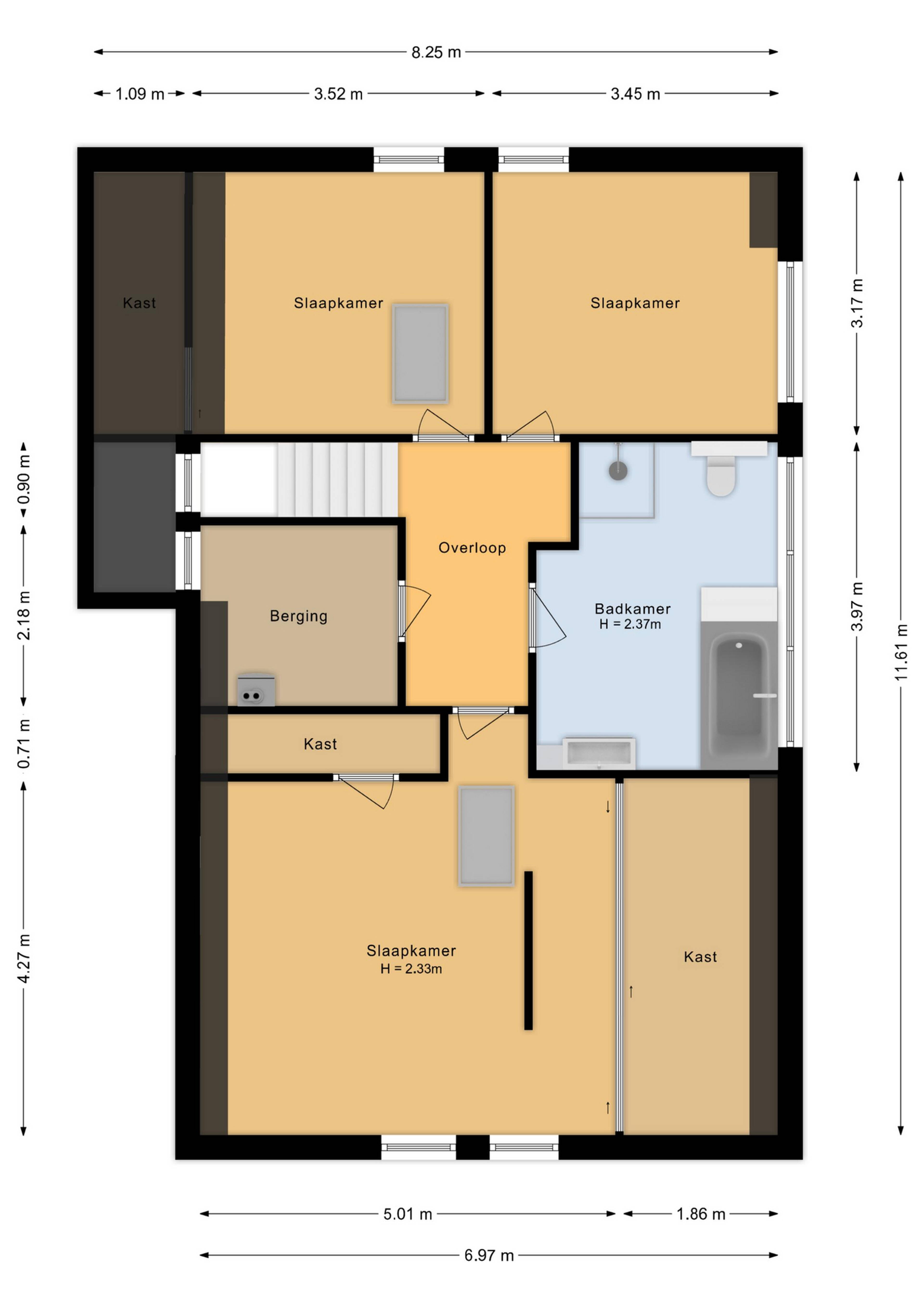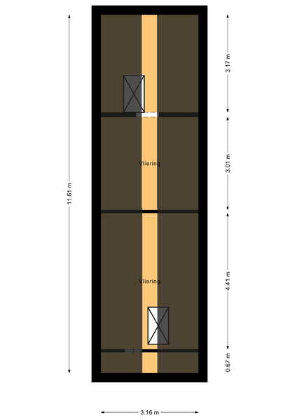 Boven de eerste verdieping bevindt zich een praktische vliering van circa 6 m², ideaal als extra bergruimte.