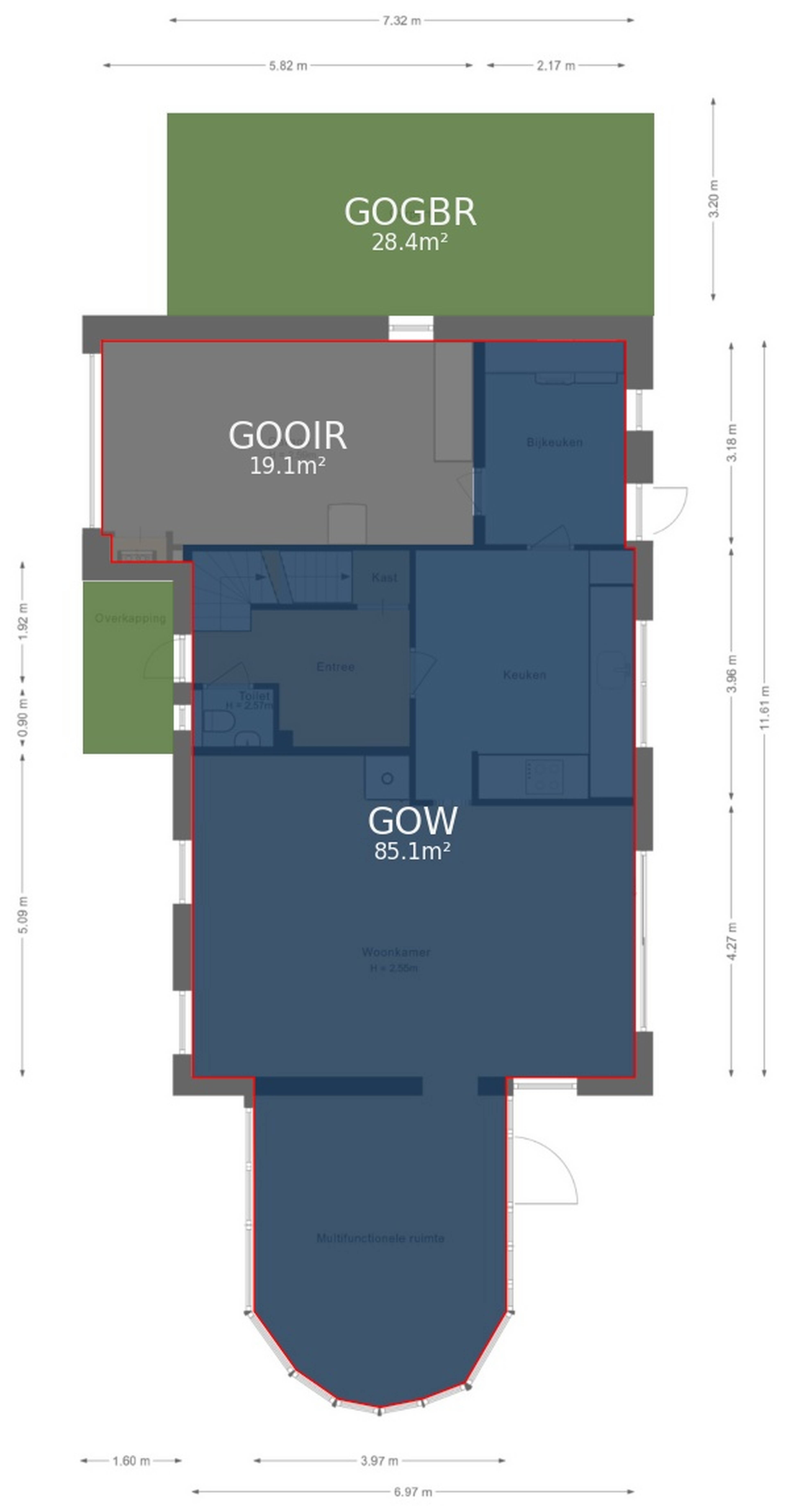 -Volledig geïsoleerd (vloer, dak, gevel), HR+ beglazing