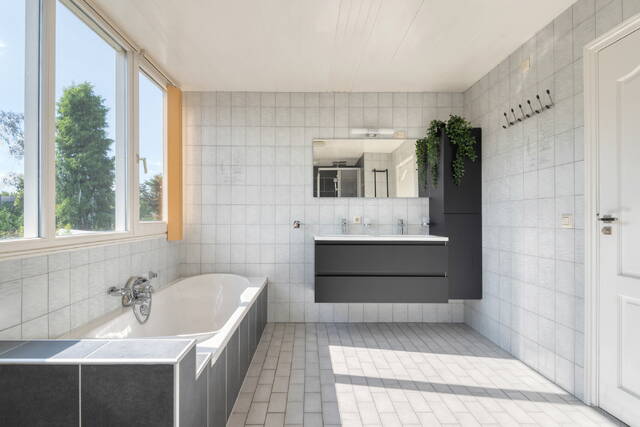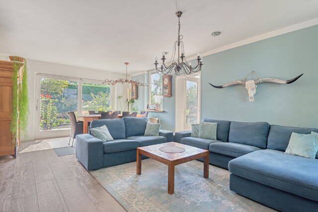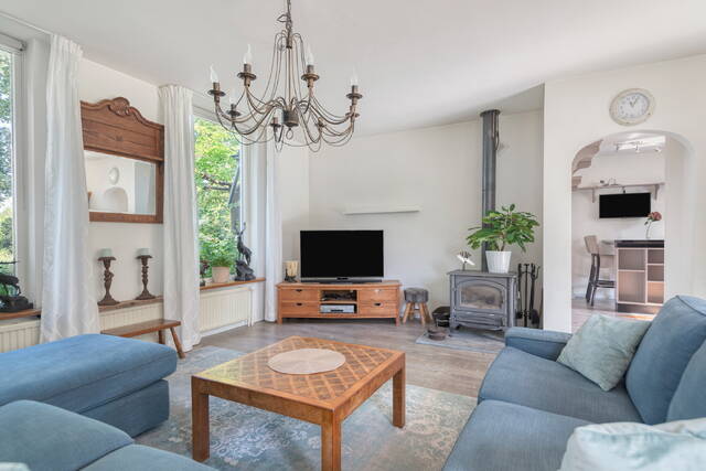 Aansluitend vindt u de sfeervolle woonkamer, voorzien van vloerverwarming en openslaande deuren naar de tuin. Dankzij de grote ramen geniet u hier van veel natuurlijk licht en een fijn uitzicht op het groen.