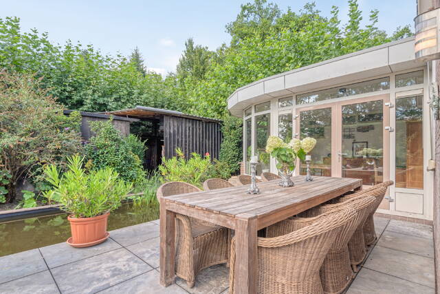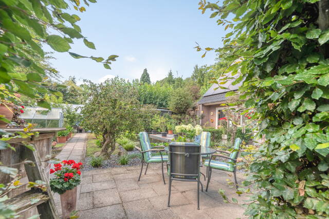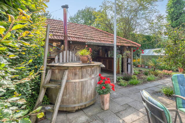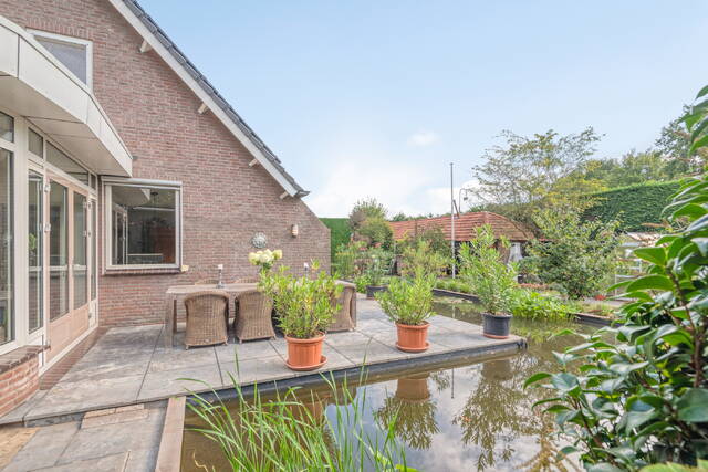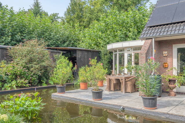 Het perceel van 961 m² is met veel zorg en aandacht aangelegd. U vindt hier een ruim terras, een sfeervolle vijver en volop groen, waardoor u geniet van rust en privacy.