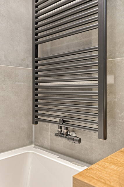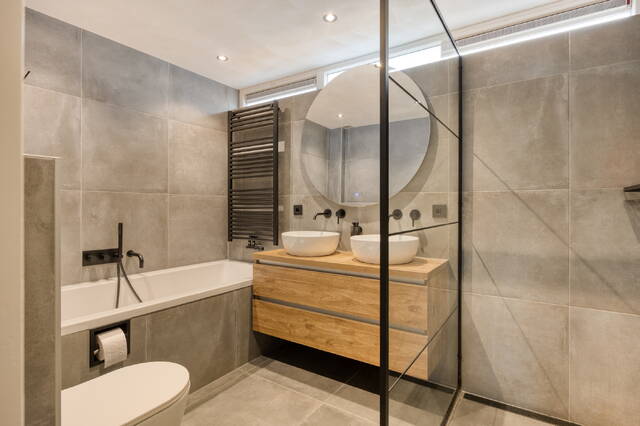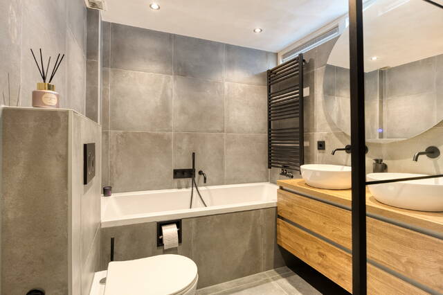 On the first floor there are three spacious bedrooms, all neatly finished and fitted with maintenance-free window frames and HR++ double glazing. The bathroom was completely renovated in 2021 and exudes luxury, featuring a bathtub, walk-in shower, modern washbasin unit, toilet and designer radiator.