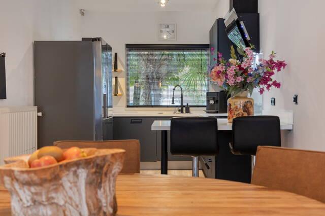 The house was built in 1980 and offers a living area of approximately 140 m² on a plot of around 179 m². The energy label is A, partly thanks to twelve privately owned solar panels of 400Wp each, installed in 2023. The property also features a central heating system from 2019, air conditioning from 2021, a dormer and shed roof renewed in 2021, a modern mechanical ventilation system and maintenance-free window frames with HR++ glass. The rear extension, the garden canopy and the domotics system allowing you to control lighting and heating via an app or HomePod complete the whole picture.