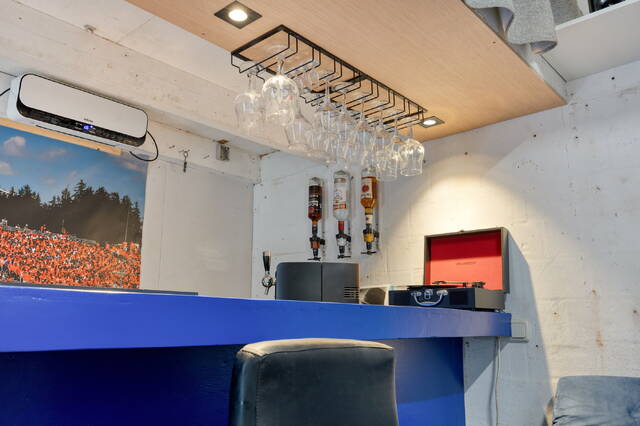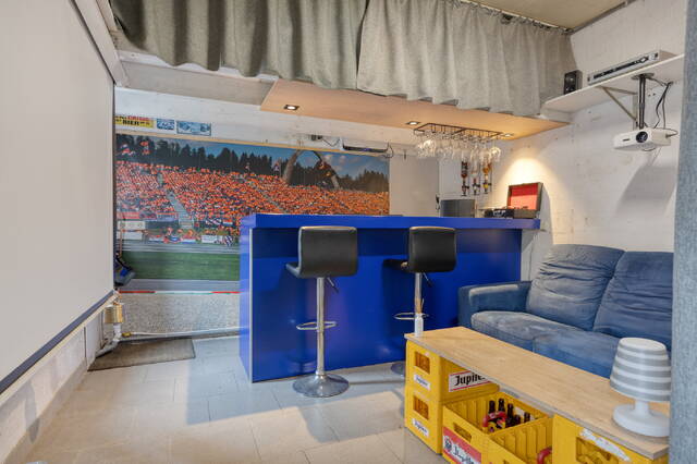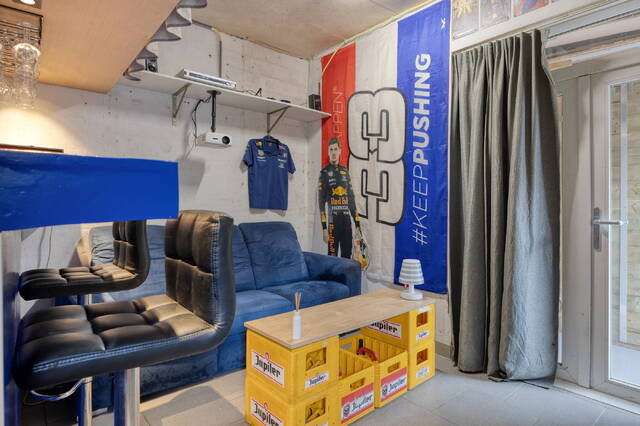 The backyard is neatly and low-maintenance landscaped. Under the canopy, you can enjoy outdoor living all year round – from long summer evenings to cosy autumn get-togethers. At the back of the garden is something special: a brick shed converted into a man cave with its own bar, electricity and water connection. The ideal place to relax, play darts or watch Formula 1 with friends. The bar, including the setup, is available for takeover by agreement.
