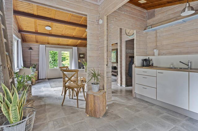 • Aansluiting met een rookkanaal/schoorsteen op het dak voor ern houtbrander of pelletkachel (rechts naast de dubbele openslaande deuren)