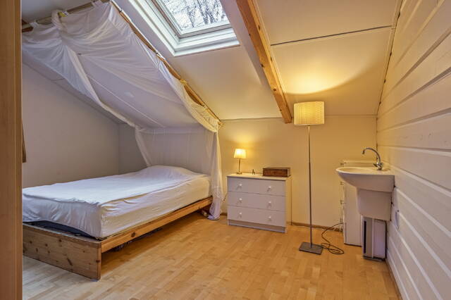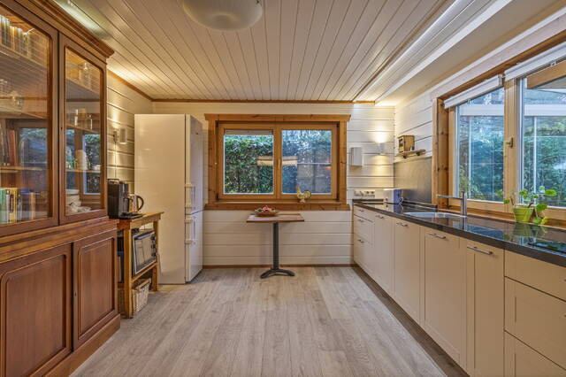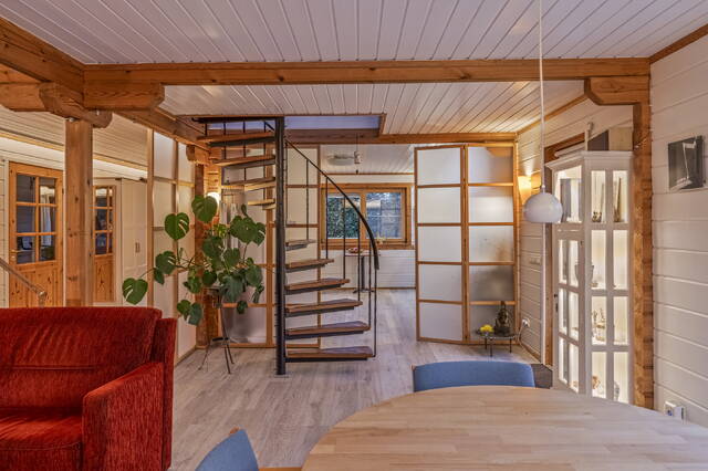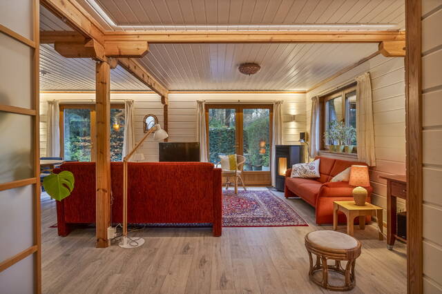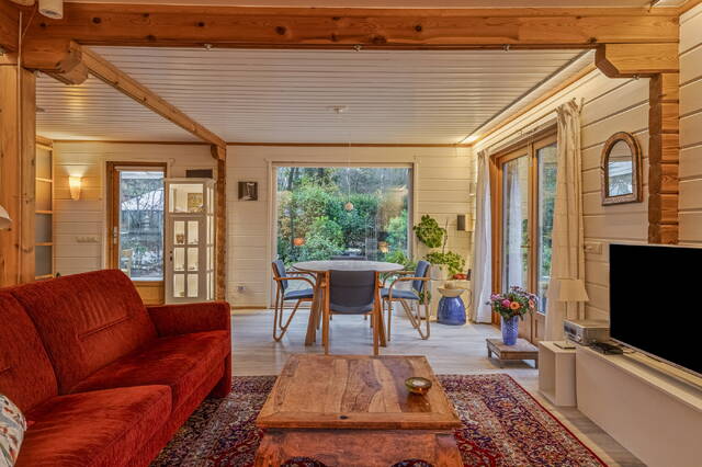Deze unieke Finse bungalow (141m2 woonoppervlakte + 18m2 serre), gebouwd in 1998, staat op een ruim perceel van 644 m² met eeuwigdurende erfpacht en biedt alles voor de natuurliefhebber die privacy en rust zoekt.
