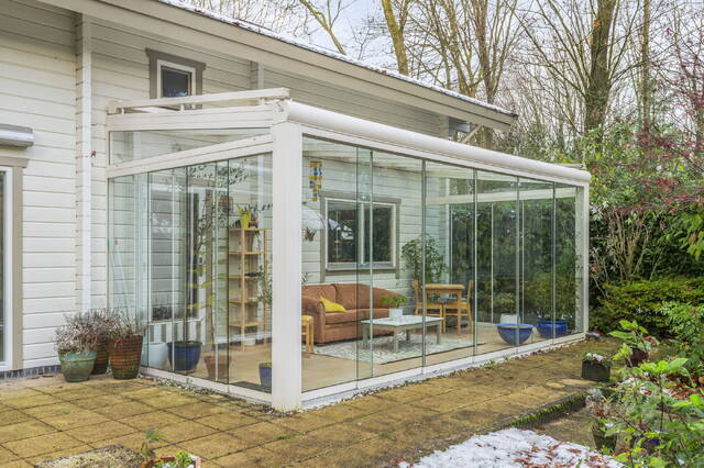 • Ruime serre (18 m²) – Luxe aluminium serre met rondom glazen schuifdeuren, perfect voor een licht en ruimtelijk gevoel.