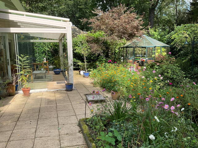 Tevens heeft het een aangebouwde serre en een vrijstaande kas.