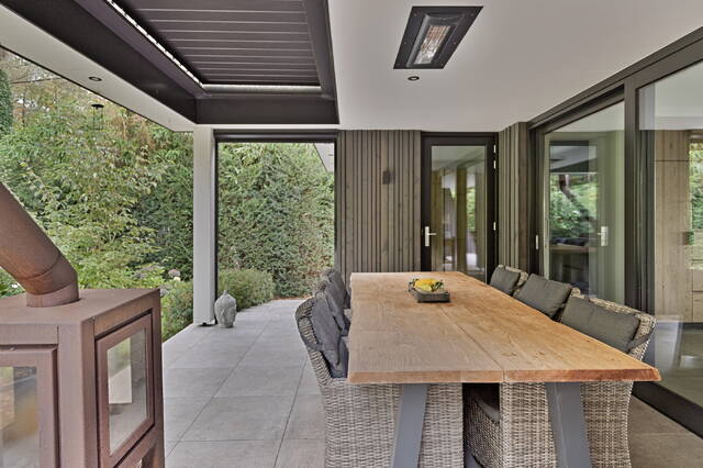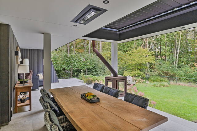 • Overdekt terras aan de voor- en achterkant, beiden voorzien van warmtelampen