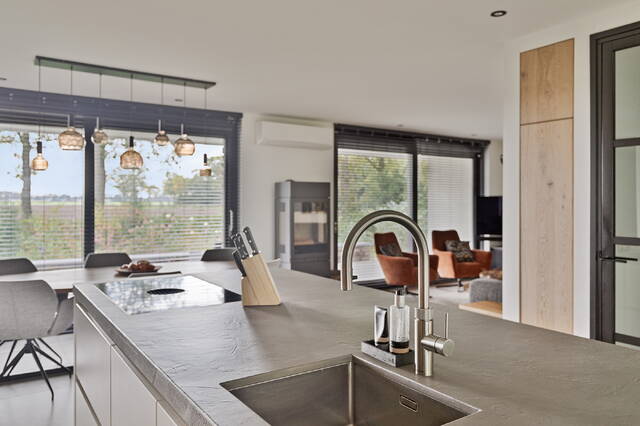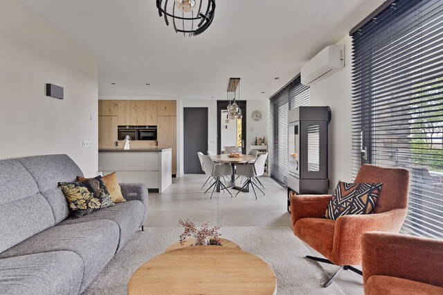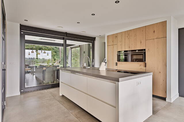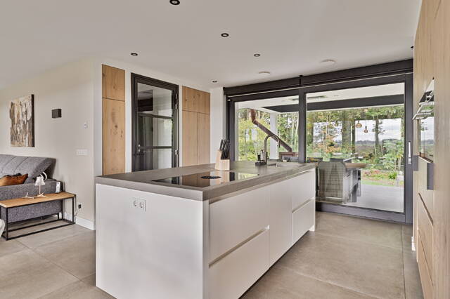 • Licht en lucht: Grote raampartijen tot aan de vloer zorgen voor een prachtige verbinding tussen binnen en buiten.