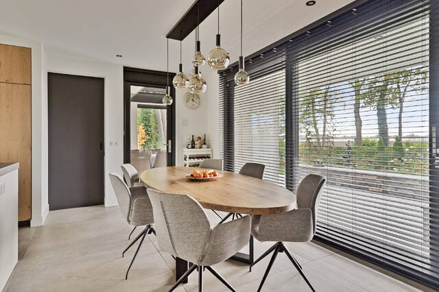 • Elektrische jaloezieën binnen bij de schuifpuien