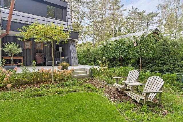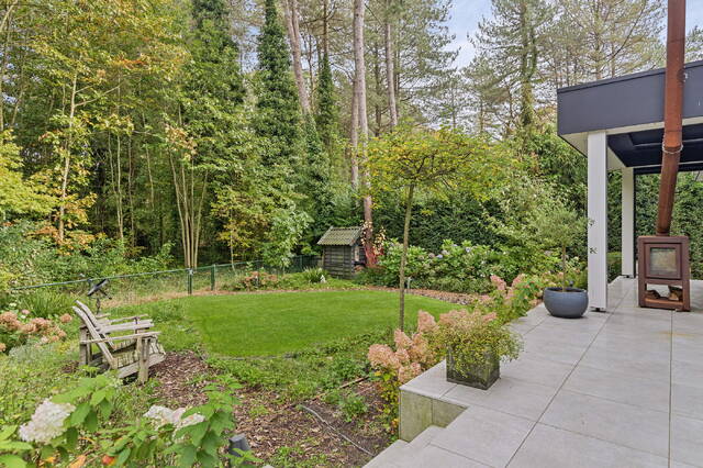 • Tuin met privacy: Fraai aangelegde tuin over drie percelen eigen grond, met verschillende overkapte zitplekken en een vrij uitzicht aan zowel voorzijde (landerijen) als achterzijde (bos)