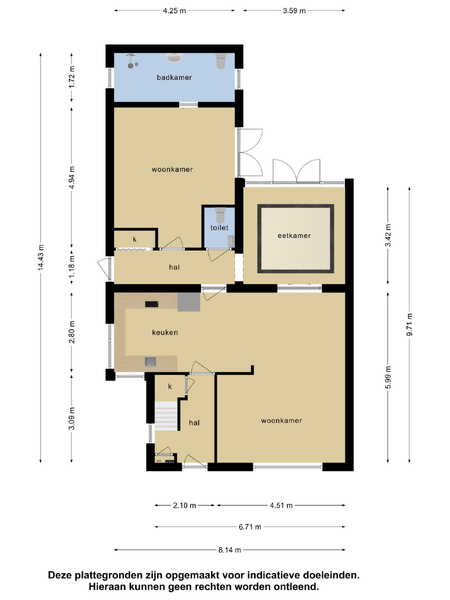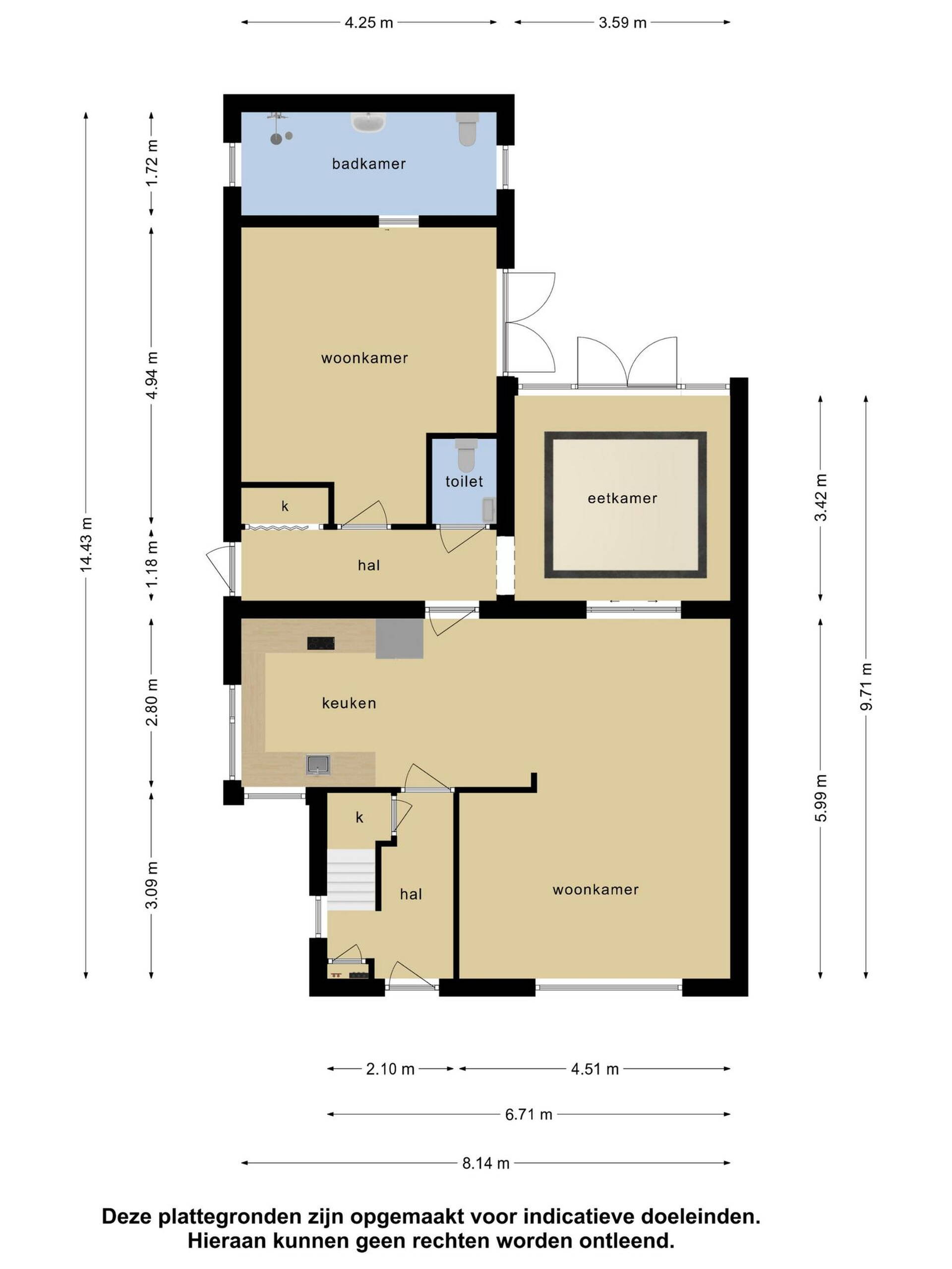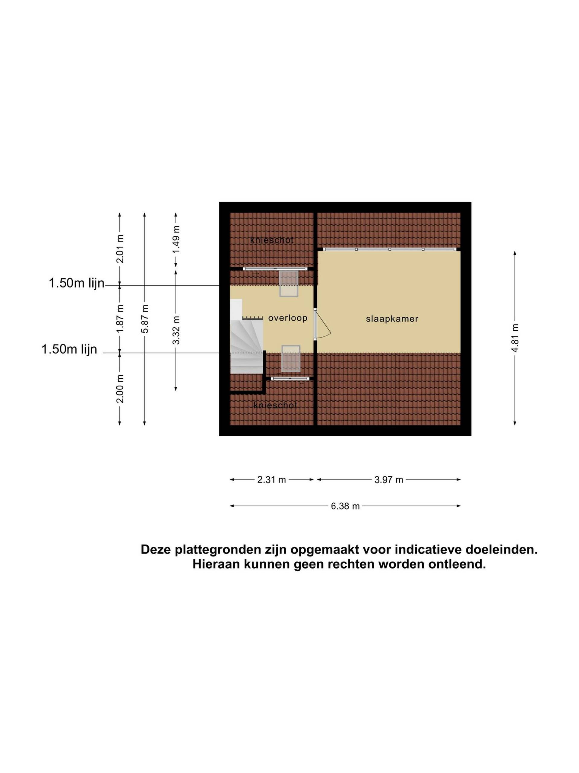 Deze informatie is door ons met de nodige zorgvuldigheid samengesteld. Onzerzijds wordt echter geen enkele aansprakelijkheid aanvaard voor enige onvolledigheid, onjuistheid of anderszins, dan wel de gevolgen daarvan. Alle opgegeven maten en oppervlakten zijn indicatief.