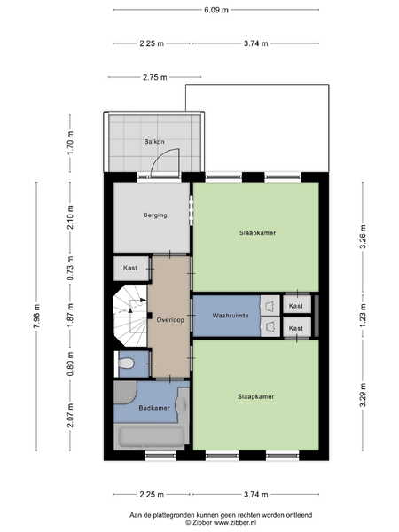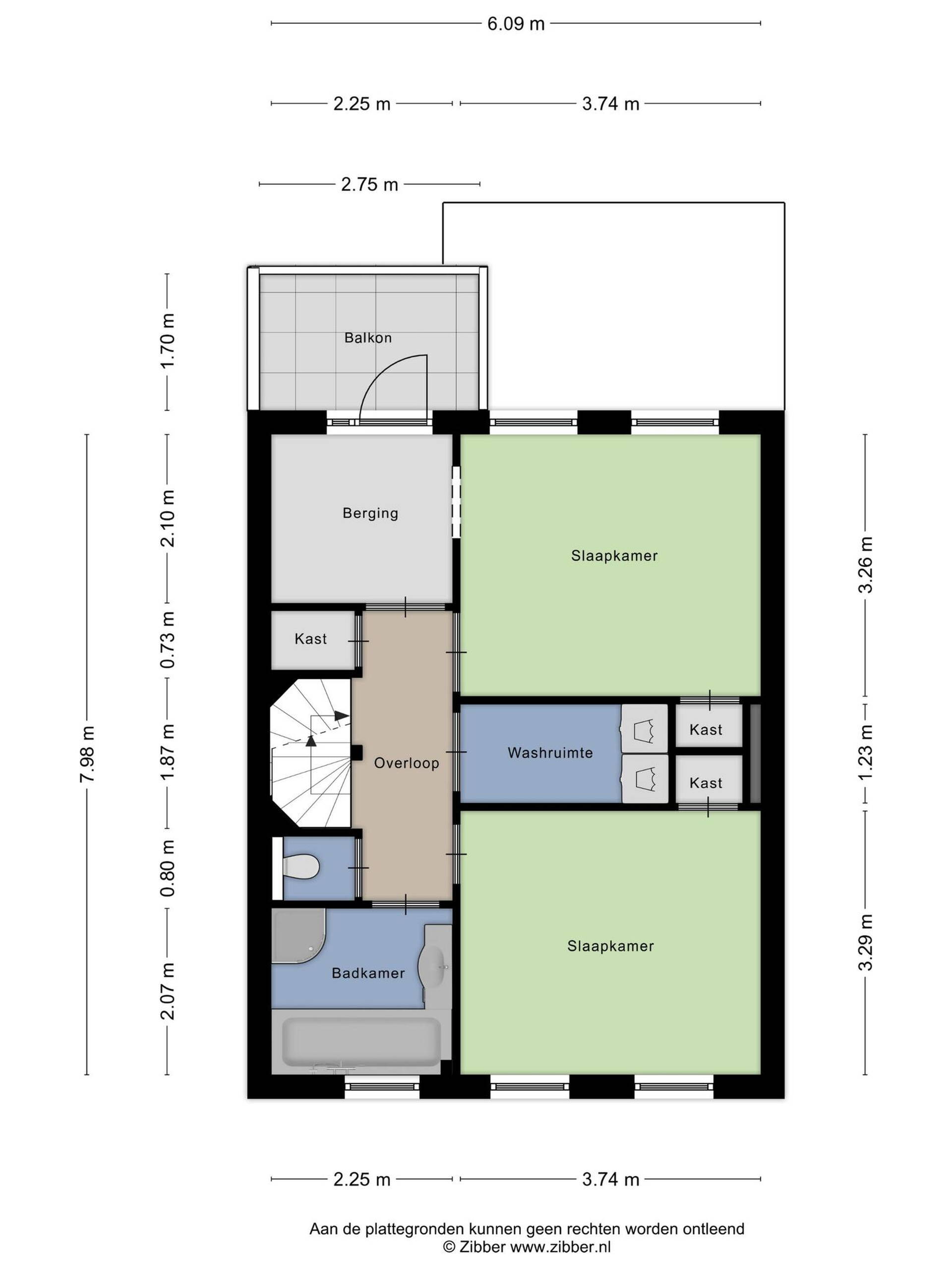 Via de trap kom je op de tweede verdieping. Hier bevinden zich een kleinere en een grote slaapkamer. De dakkapel zorgt voor veel licht en ruimte, en er is veel kast- en opbergruimte.