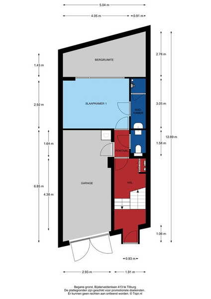 U komt de woning binnen via de hal met garderobe, trapopgang naar de eerste verdieping en via enkele traptreden omlaag toegang tot de begane grond op souterrain-niveau. Hier vindt u een hal met nette toiletruimte en een grote garage met witgoedaansluitingen. Via de hal bereikt u de slaapkamer met raampartij uitkijkend op de serre/fitnessruimte, welke bereikt kan worden vanuit de living. De slaapkamer is afgewerkt met een lichte laminaatvloer en geeft toegang tot een badkamer met badkamermeubel en douchecabine met regen- en handdouche. Ook bereikt u vanuit de slaapkamer een grote bergruimte, gelegen onder de serre.