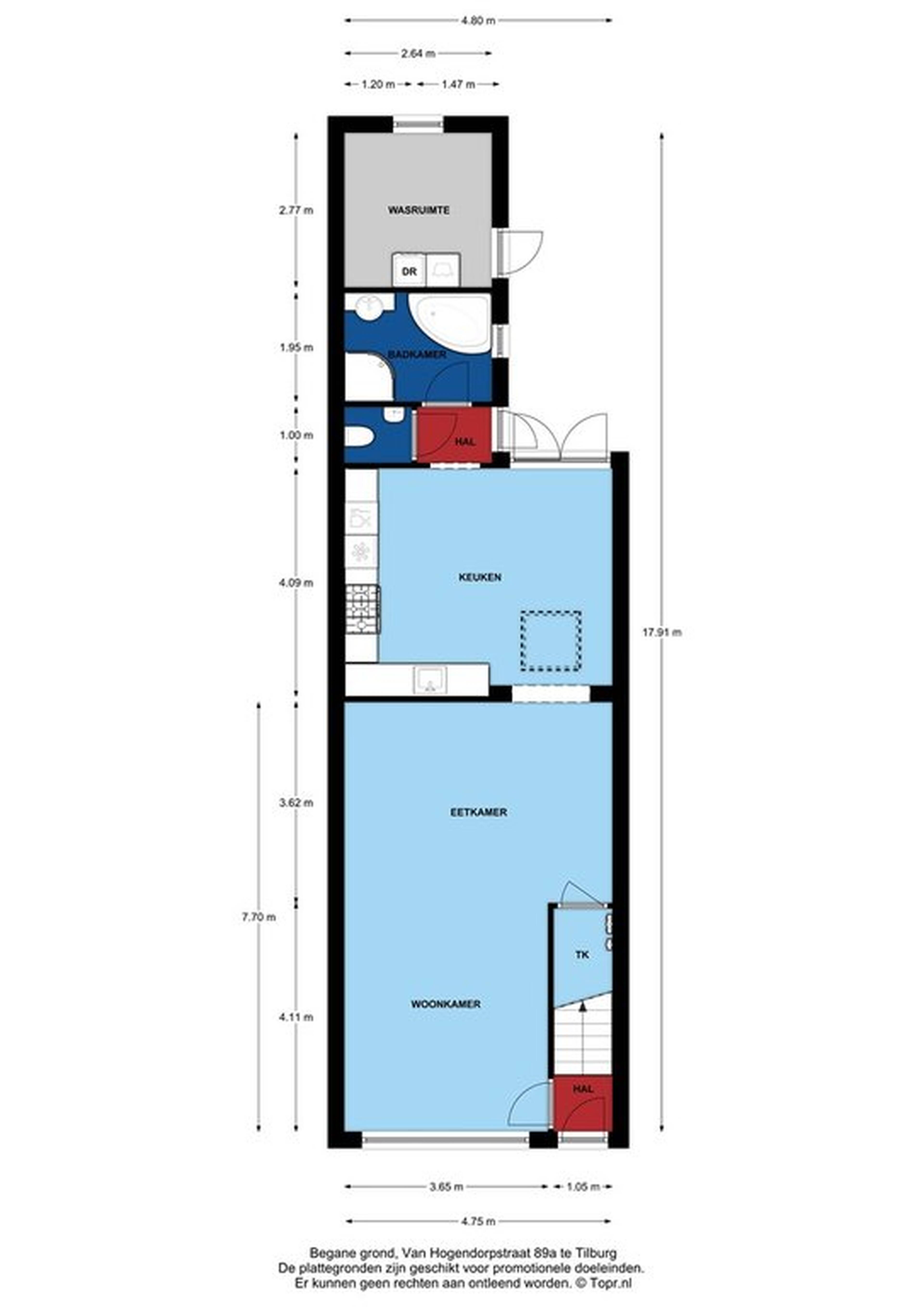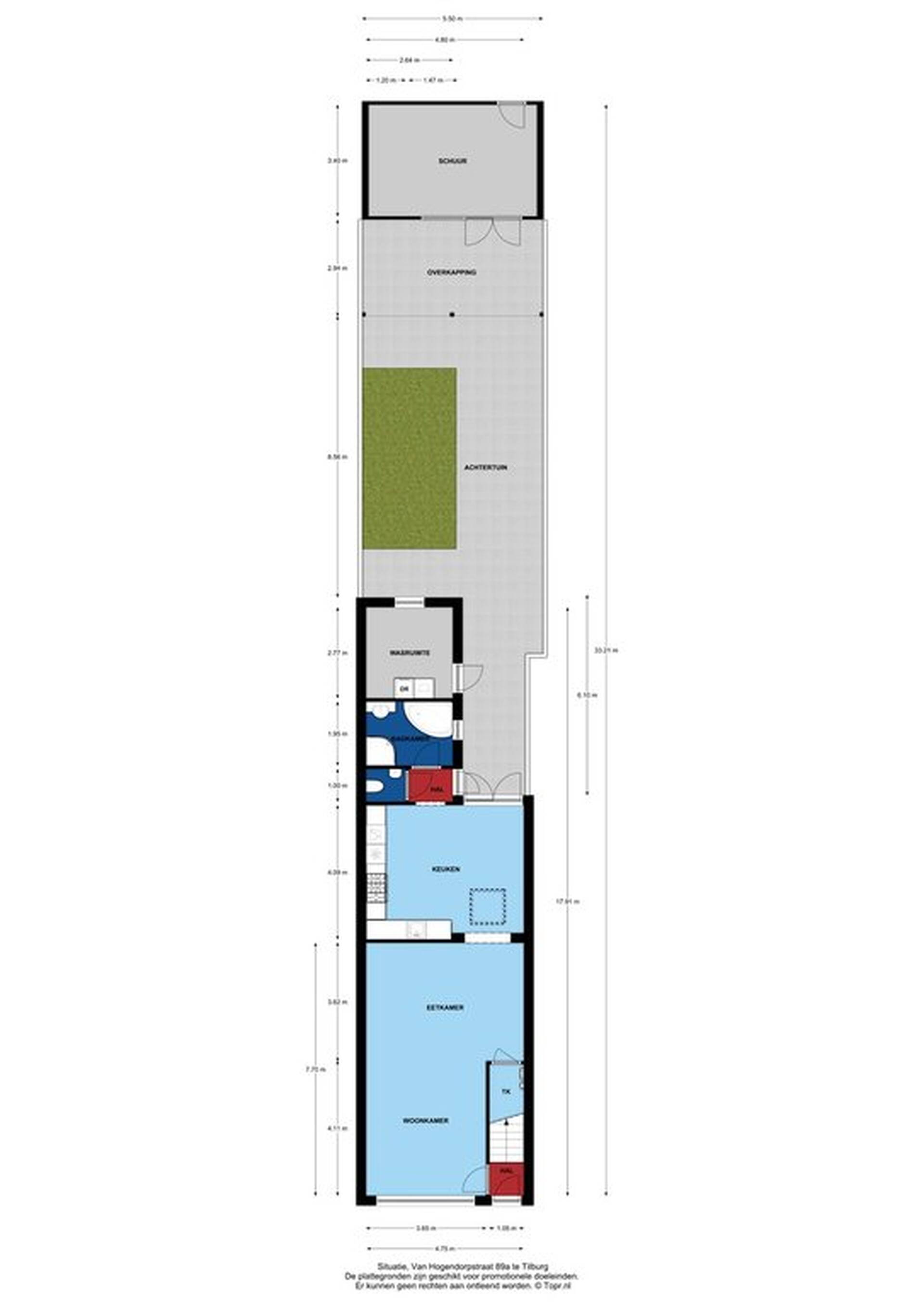 Achter de badkamer bevindt zich een berging met witgoedaansluitingen, deze kan via de buitenzijde worden bereikt.