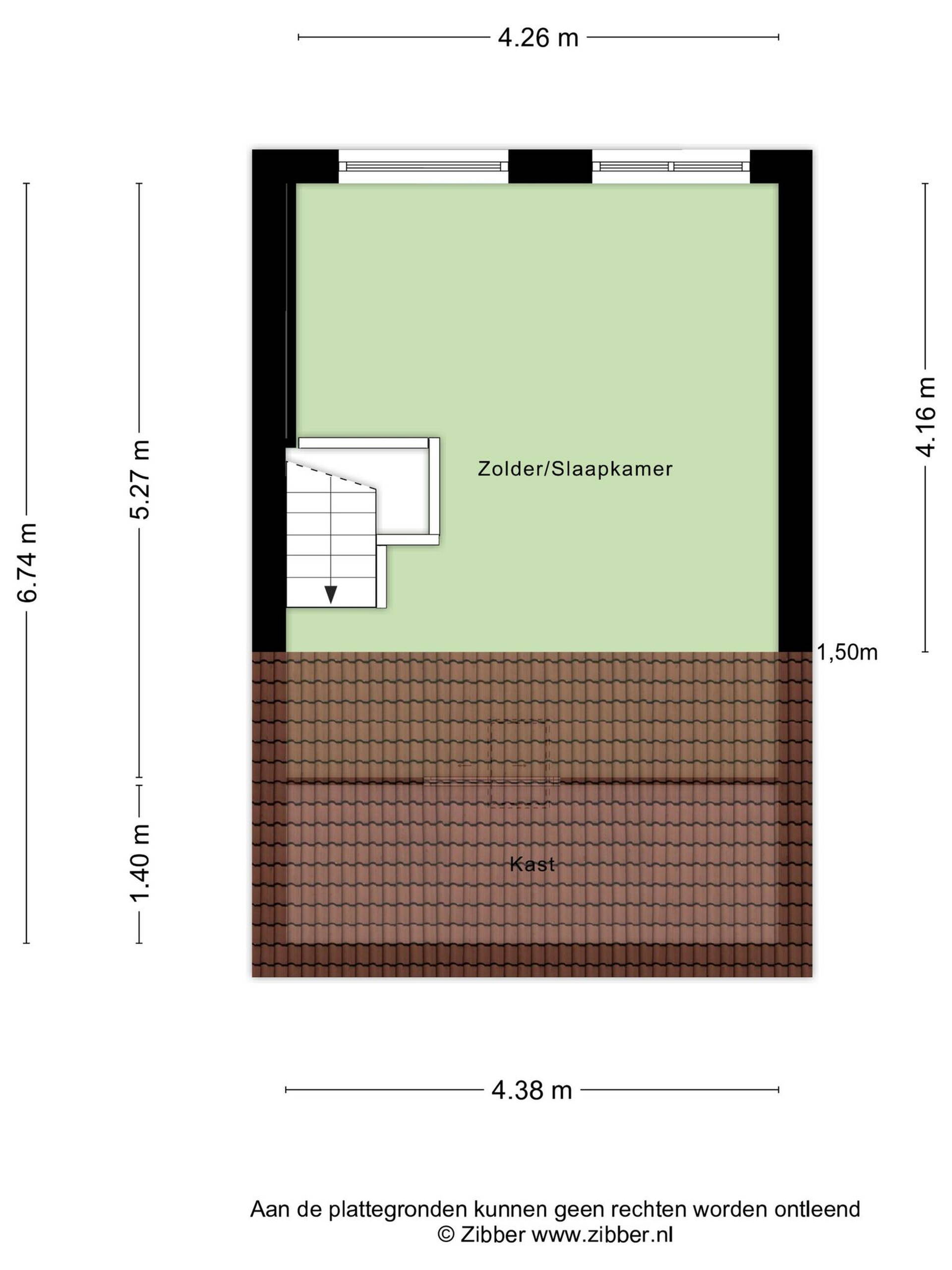 De tweede trap leidt je naar zolder, waar je onder het schuine dak en aan de achterzijde een rechte muur met raampartij nog een zeer veelzijdige ruimte vindt. Uiteraard kan je dit gebruiken als bergzolder, maar met nog een hoop sta- en loopruimte is hier ook nog een zeer grote vierde kamer van te maken.