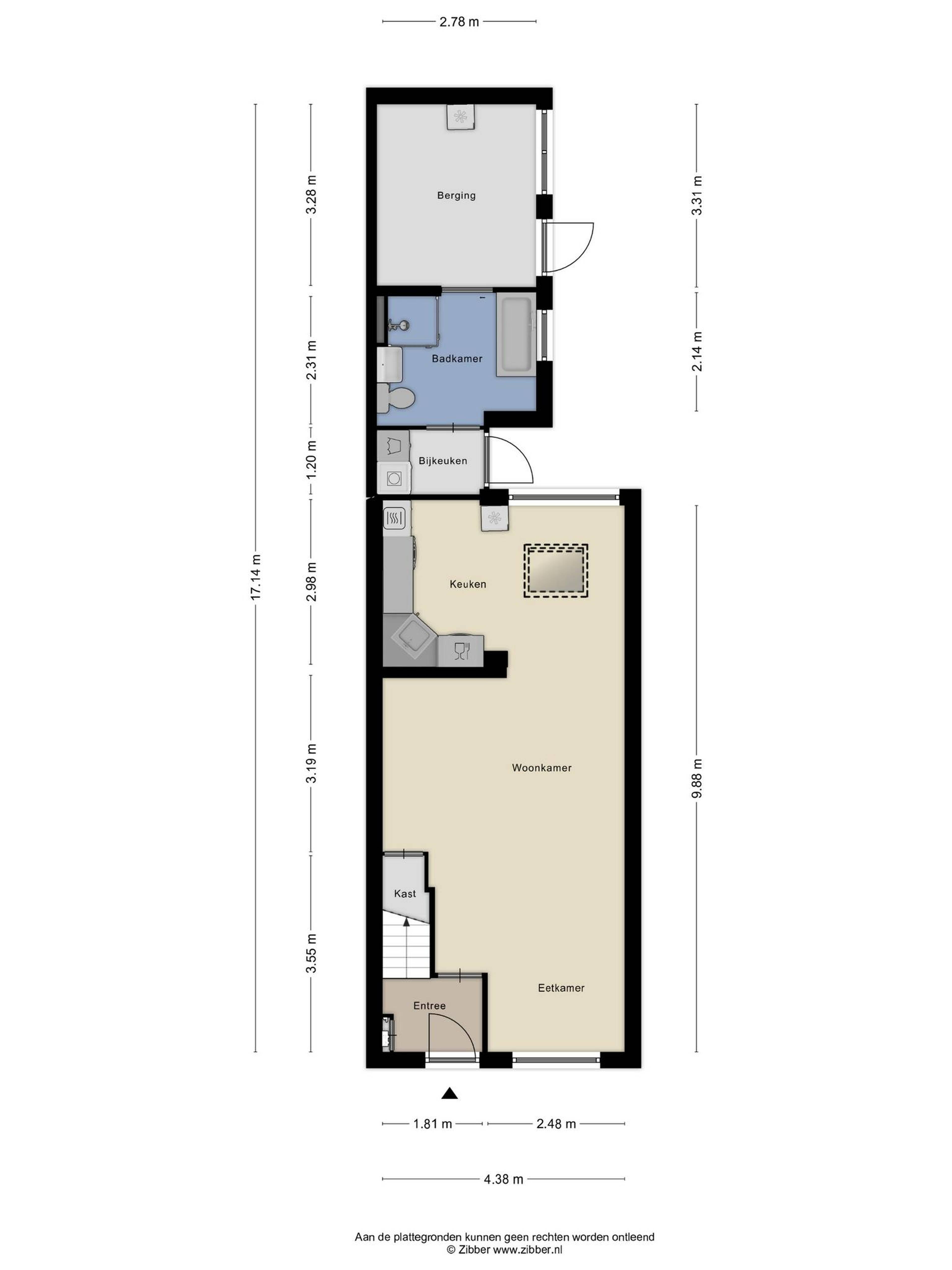 Met de voordeur direct aan de straat kom je als eerste uit op een lichte entree waar de charmante, bakstenen buitenkant wordt ingeruild voor een strak interieur. Hier vind je behalve de trap naar boven ook de deur naar de woonkamer.