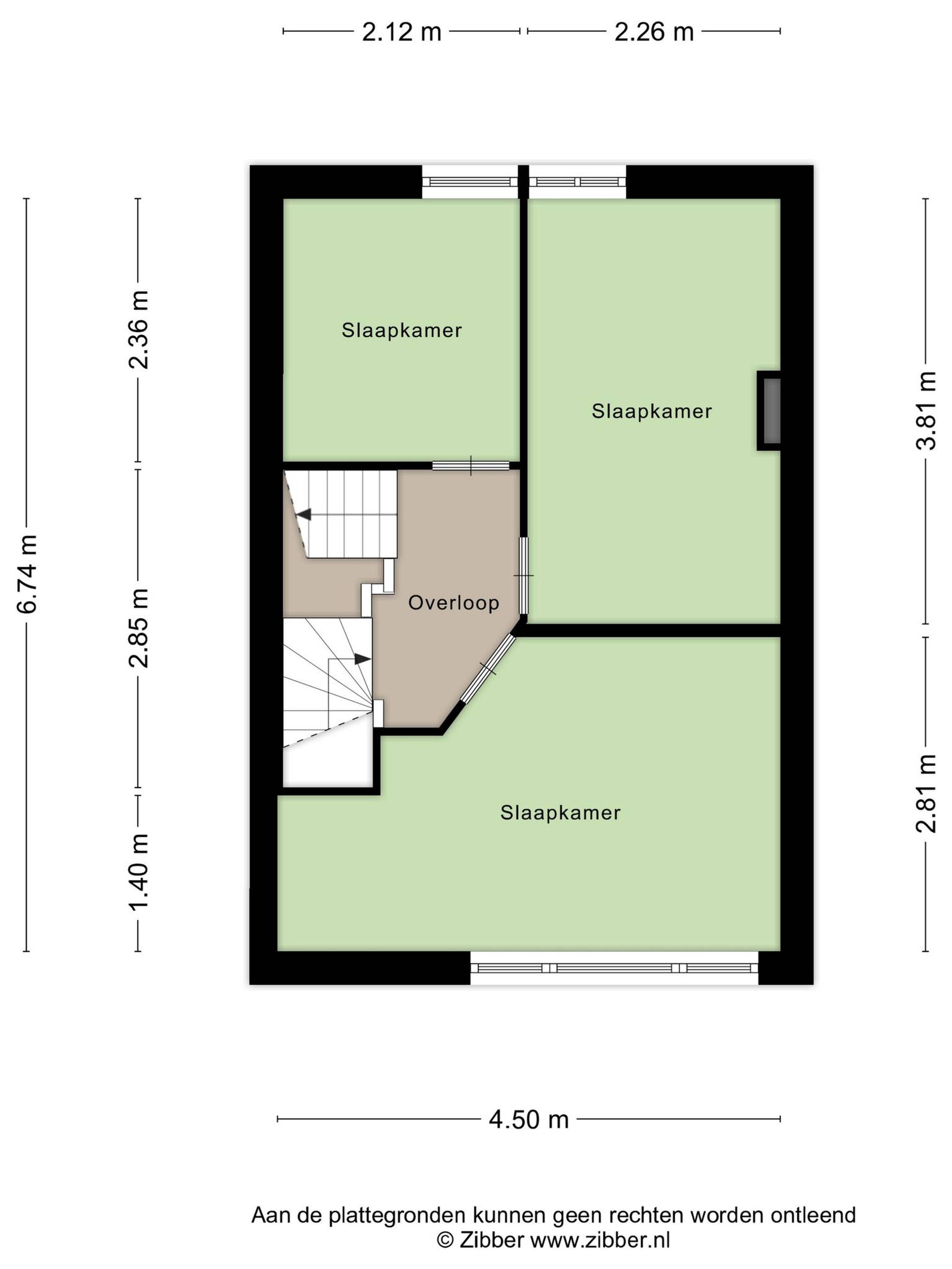 Doordat de keuken en badkamer onderdeel zijn van een uitbouw bevindt de rest van het huis zich boven de woonkamer. De trap leidt je dan ook naar een overloop waar je drie slaapkamers vindt.