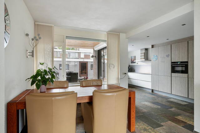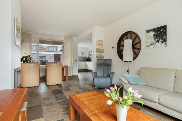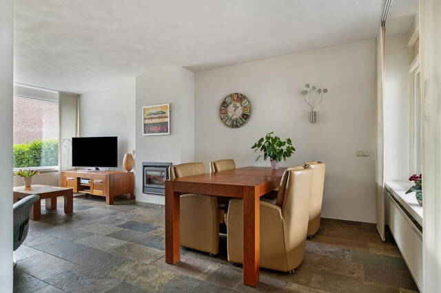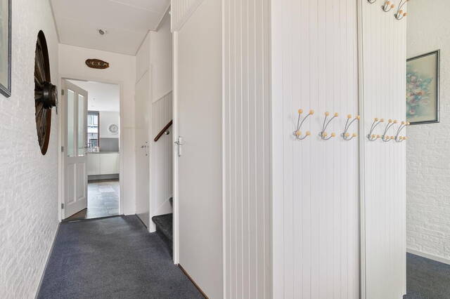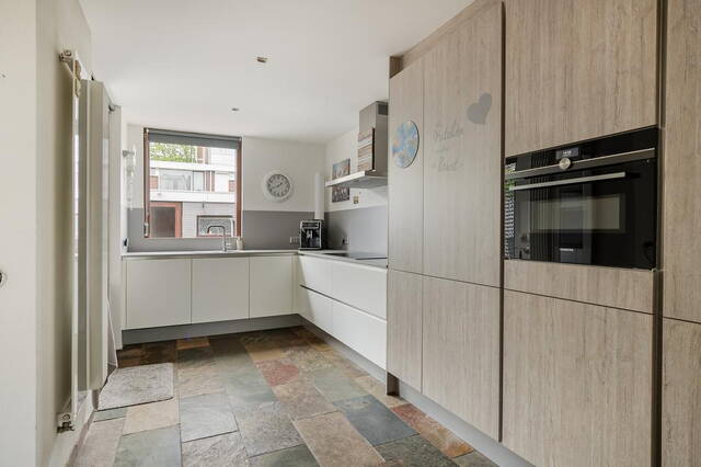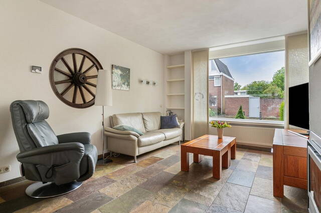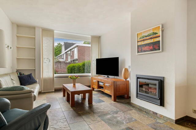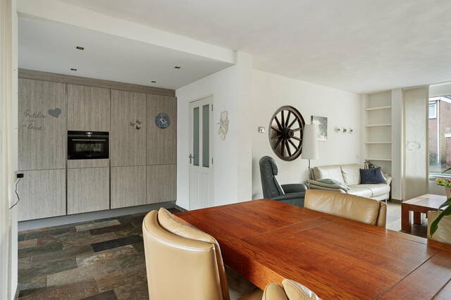De ruime voortuin van 35 m² geeft de woning een charmante uitstraling. Bij binnenkomst word je ontvangen in een ruime hal die toegang biedt tot verschillende vertrekken op de begane grond. Hier vind je de meterkast, een toilet en een trapopgang naar de eerste etage. De ruime en lichte woonkamer is voorzien van een tegelvloer en beschikt over een gezellige houtkachel, perfect voor ontspannen avonden. Vanuit de woonkamer heb je directe toegang tot de halfopen keuken. De moderne keuken is uitgerust met grote kasten, veel kastruimte en hoogwaardige inbouwapparatuur, waaronder een combi oven, vaatwasser, elektrische kookplaat en afzuigkap.