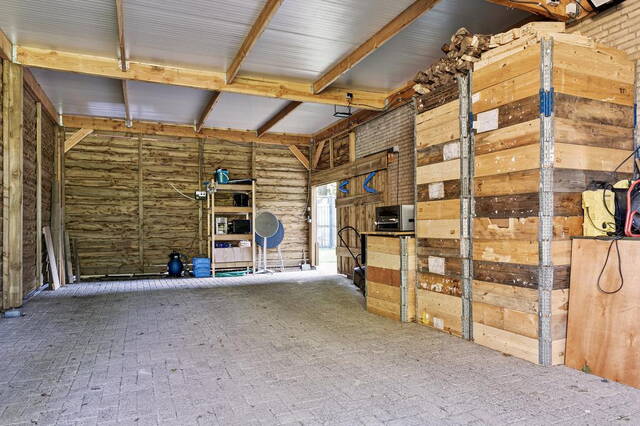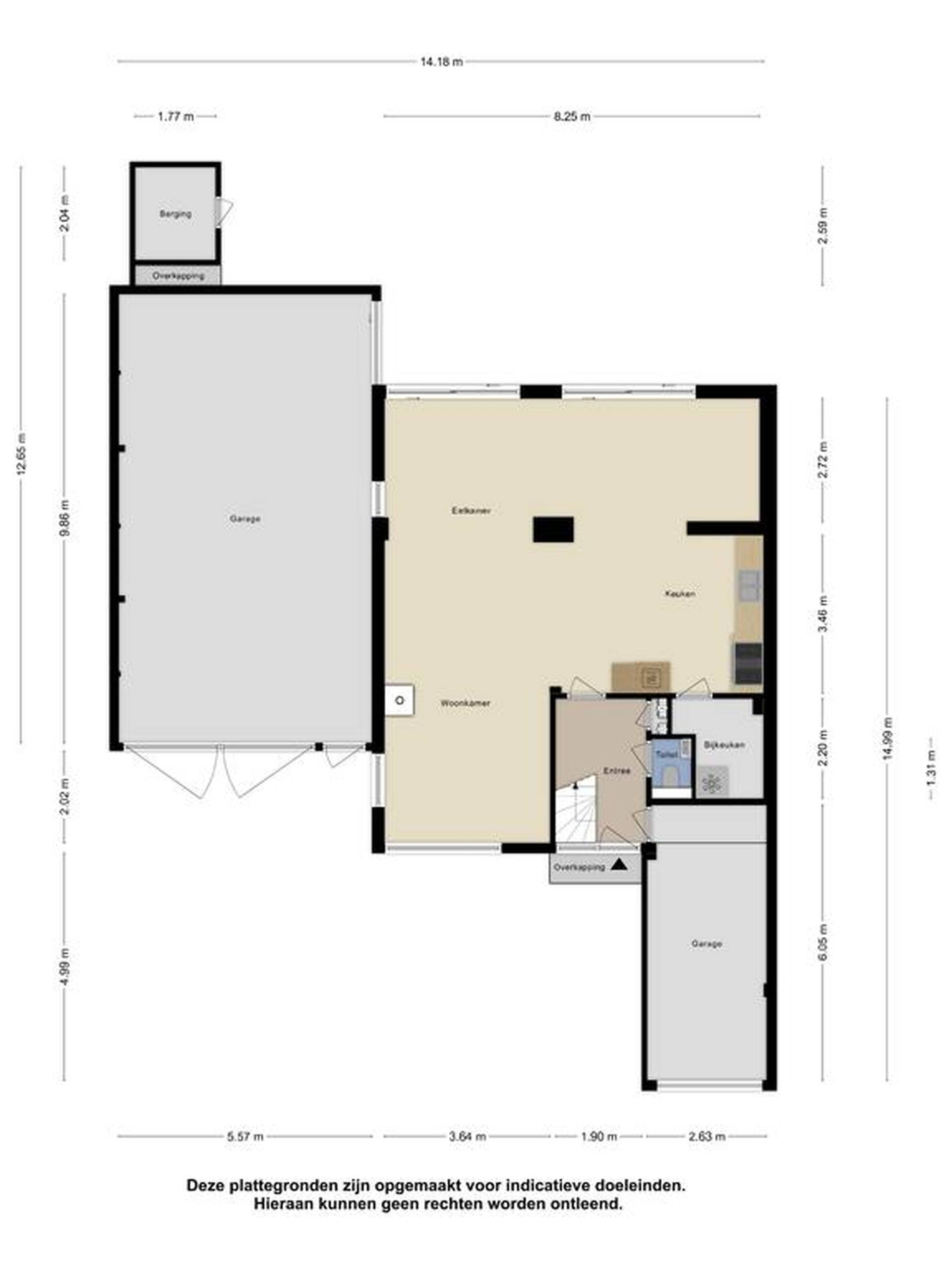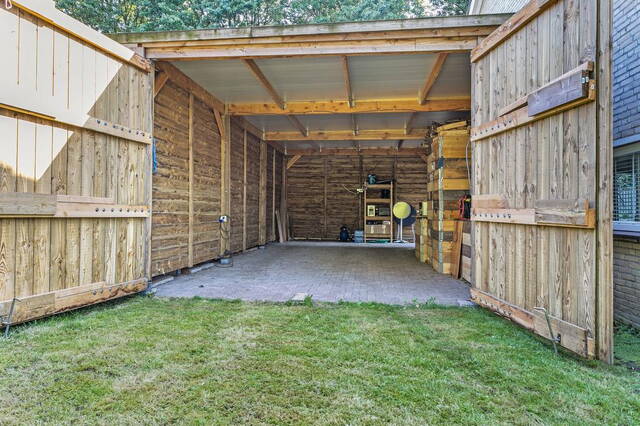 -Garage en hoge carport (3,2 meter hoog) met afsluiting;