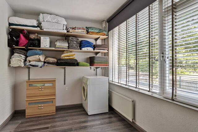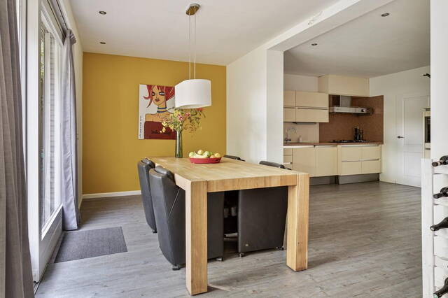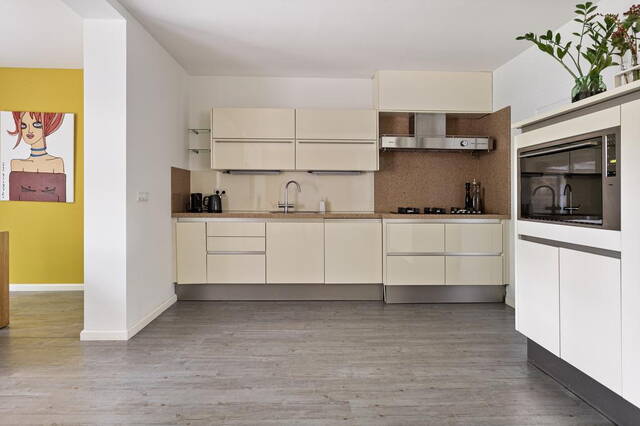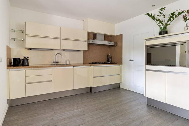 Bij binnenkomst betreedt u de hal met toegang tot de lichte en ruime woonkamer, voorzien van een sfeervolle zithoek en grote ramen die zorgen voor veel natuurlijk licht. De open keuken is praktisch ingedeeld. De inbouwapparatuur en vele kasten zorgen ervoor dat het een fijne plek is om te koken. Via de keuken heeft u toegang tot de provisieruimte.