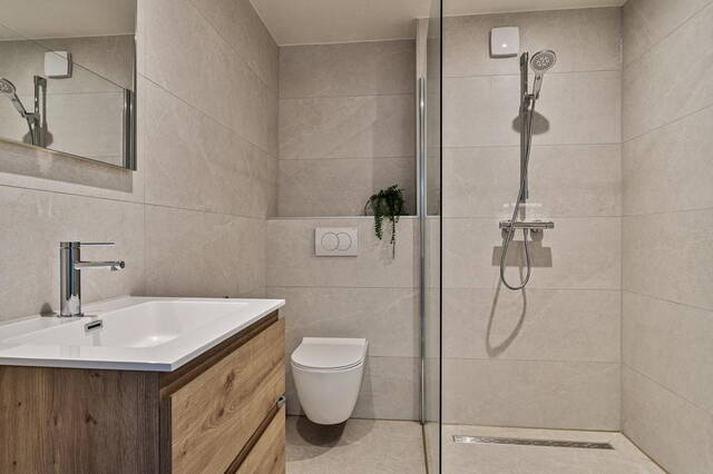 Op de eerste verdieping bevinden zich vier slaapkamers. De grote ramen zorgen voor veel lichtinval. De moderne badkamer is uitgerust met een inloopdouche, wastafel met meubel en tweede toilet.